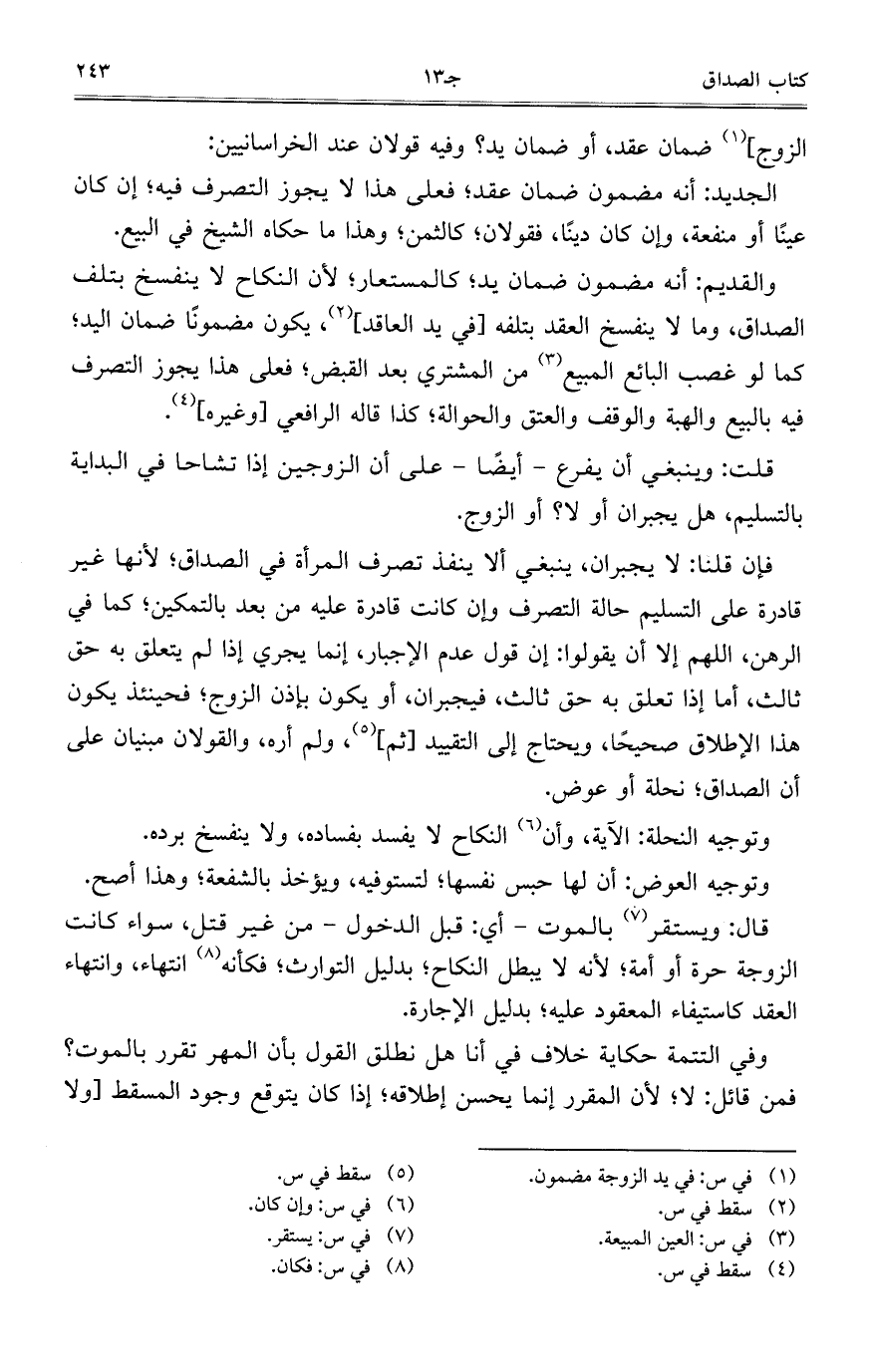 الزوج] ضمان عقد، أو ضمان يد؟ وفيه قولان عند الخراسانيين: