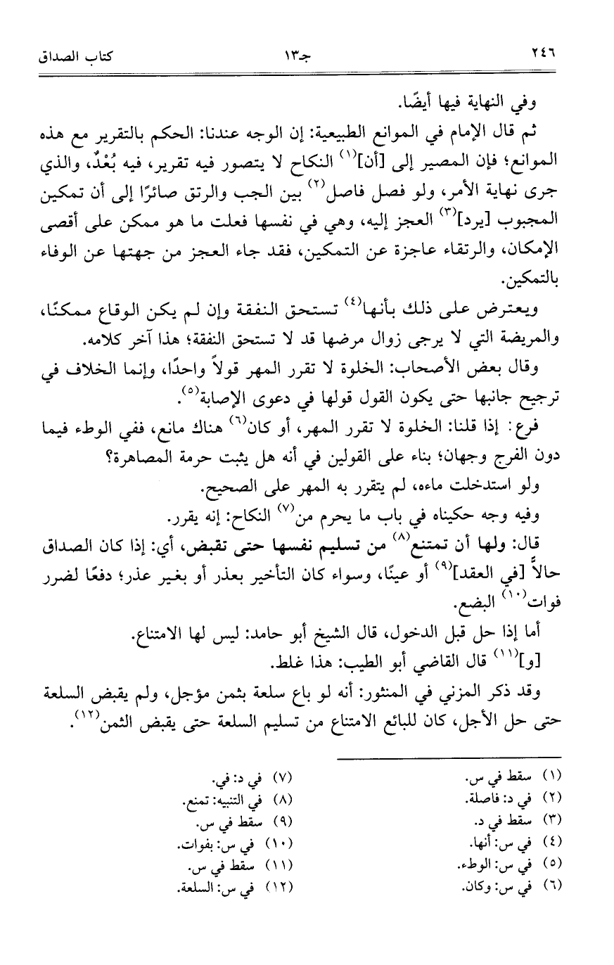 ثم قال الإمام في الموانع الطبيعية: إن الوجه عندنا: الحكم بالتقرير مع هذه الموانع؛ فإن المصير إلى [أن] النكاح لا يتصور فيه تقرير، فيه بُعْدٌ، والذي جرى نهاية الأمر، ولو فصل فاصل بين الجب والرتق صائراً إلى أن تمكين المجبوب [يرد] العجز إليه، وهي في نفسها فعلت ما هو ممكن على أقصى الإمكان، والرتقاء عاجزة عن التمكين، فقد جاء العجز من جهتها عن الوفاء بالتمكين.