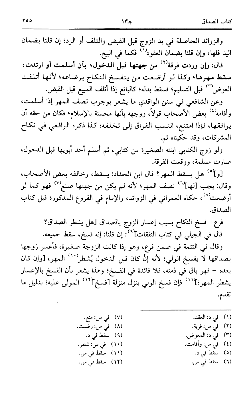 وعن الشافعي في سنن الواقدي ما يشعر بوجوب نصف المهر إذا أسلمت، وأقامه بعض الأصحاب قولاً، ووجهه بأنها محسنة بالإسلام؛ فكان من حقه أن يوافقها، فإذا امتنع، انتسب الفراق إلى تخلفه؛ كذا ذكره الرافعي في نكاح المشركات، وقد حكيناه ثم.