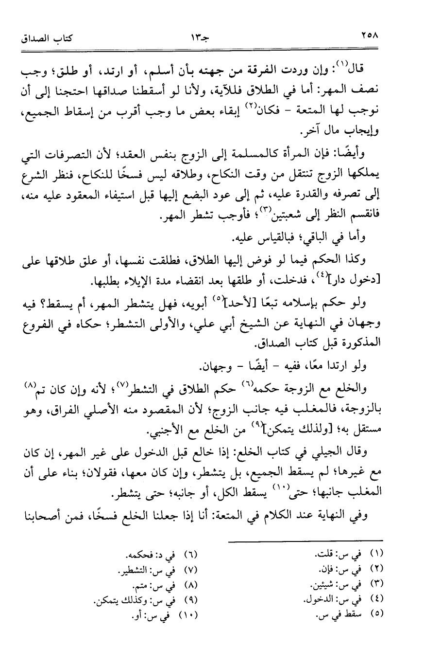 قال: وإن وردت الفرقة من جهته بأن أسلم، أو ارتد، أو طلق؛ وجب نصف المهر: أما في الطلاق فللآية، ولأنا لو أسقطنا صداقها احتجنا إلى أن نوجب لها المتعة- فكان إبقاء بعض ما وجب أقرب من إسقاط الجميع، وإيجاب مال آخر.