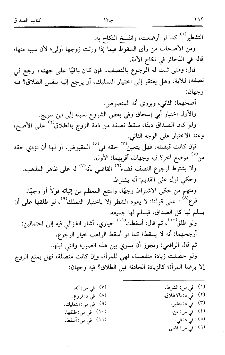 ولا يشترط لرجوع النصف قضاء القاضي بأنه له على ظاهر المذهب.