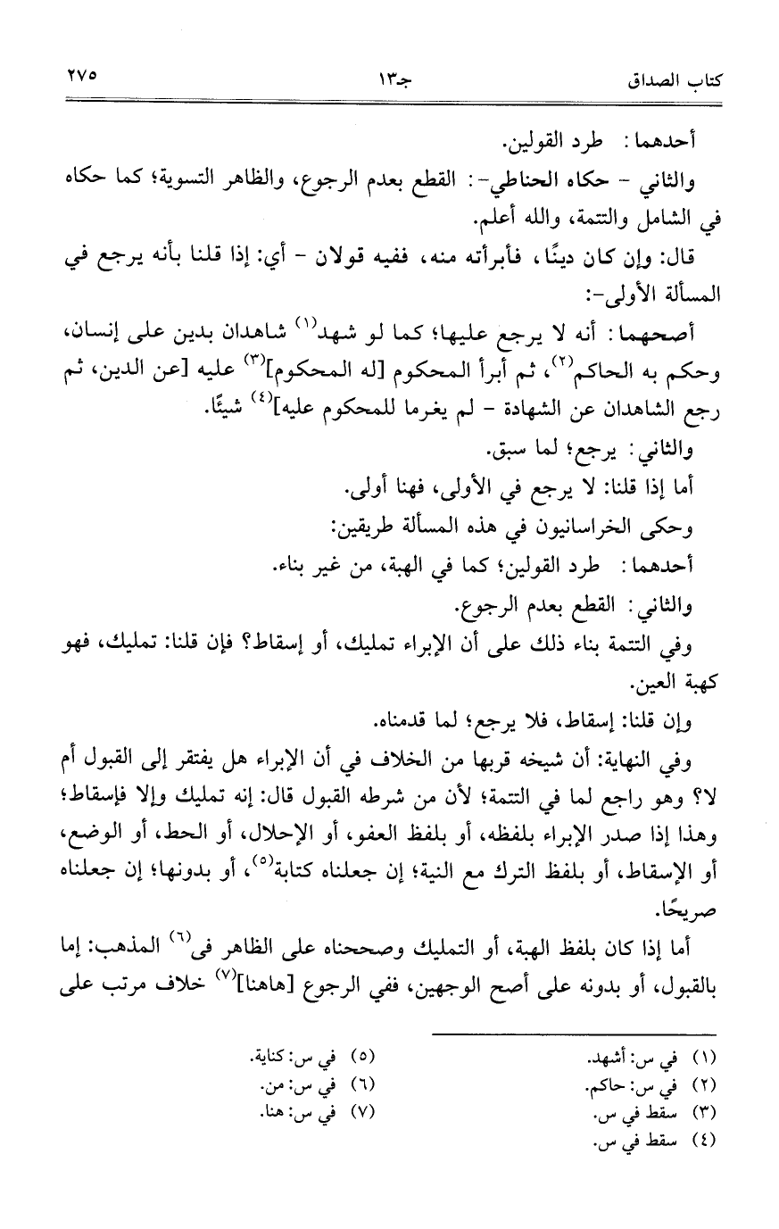 والثاني- حكاه الحناطي-: القطع بعدم الرجوع، والظاهر التسوية؛ كما حكاه في الشامل والتتمة، والله أعلم.