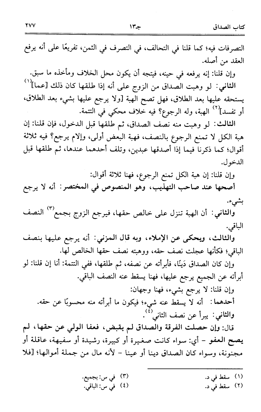 والثاني: أن الهبة تنزل على خالص حقها، فيرجع الزوج بجمع النصف الباقي.
