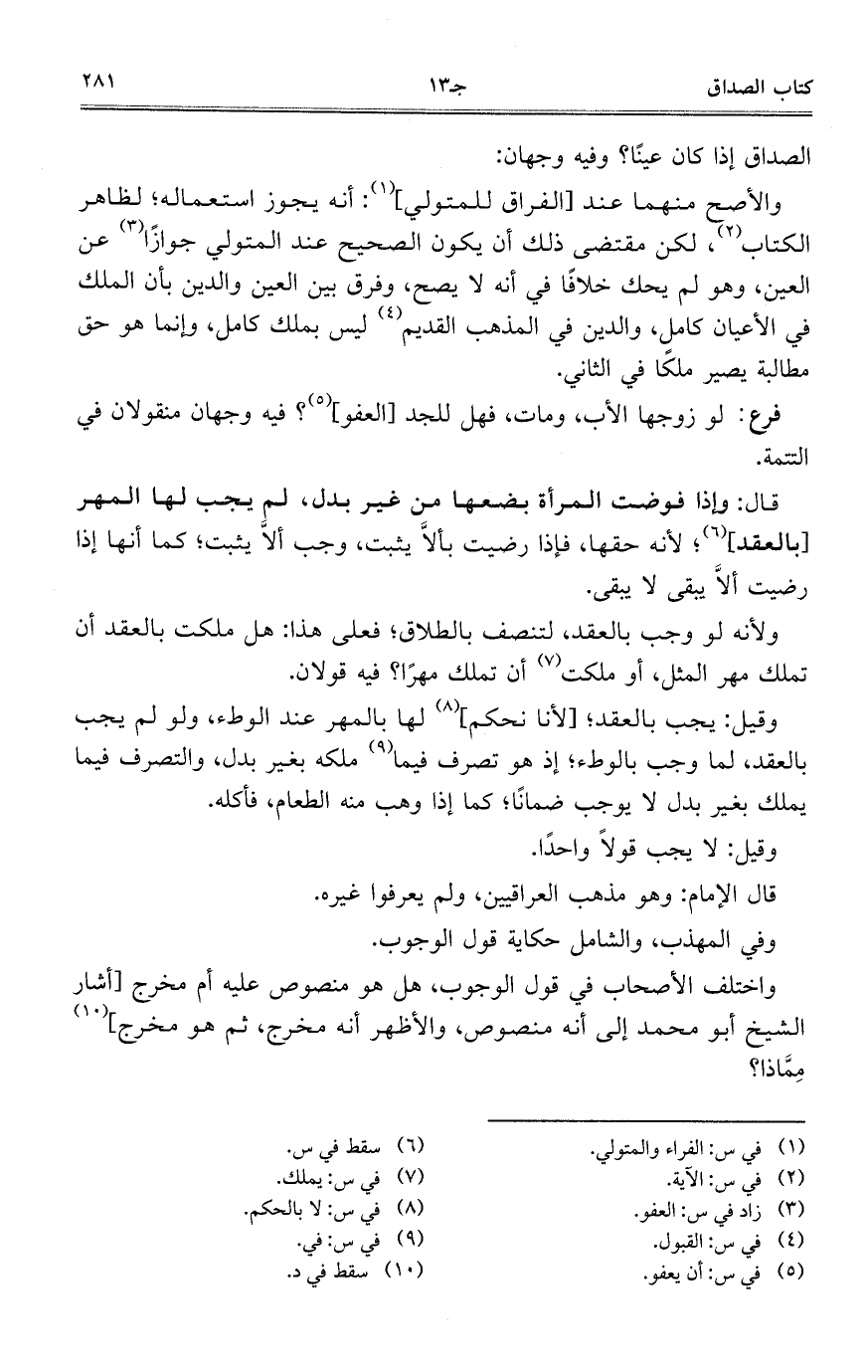 الصداق إذا كان عيناً؟ وفيه وجهان:
