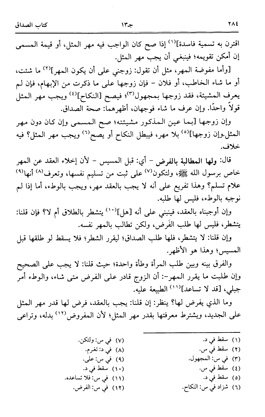 قال: ولها المطالبة بالفرض- أي: قبل المسيس- لأن إخلاء العقد عن المهر خاص برسول الله صلى الله عليه وسلم، ولتكون على ثبت من تسليم نفسها، وتعرف أنها علام تسلم؟ وهذا تفريع على أنه لا يجب بالعقد مهر، ويجب بالوطء، أما إذا لم نوجبه بالوطء، فليس لها طلبه.