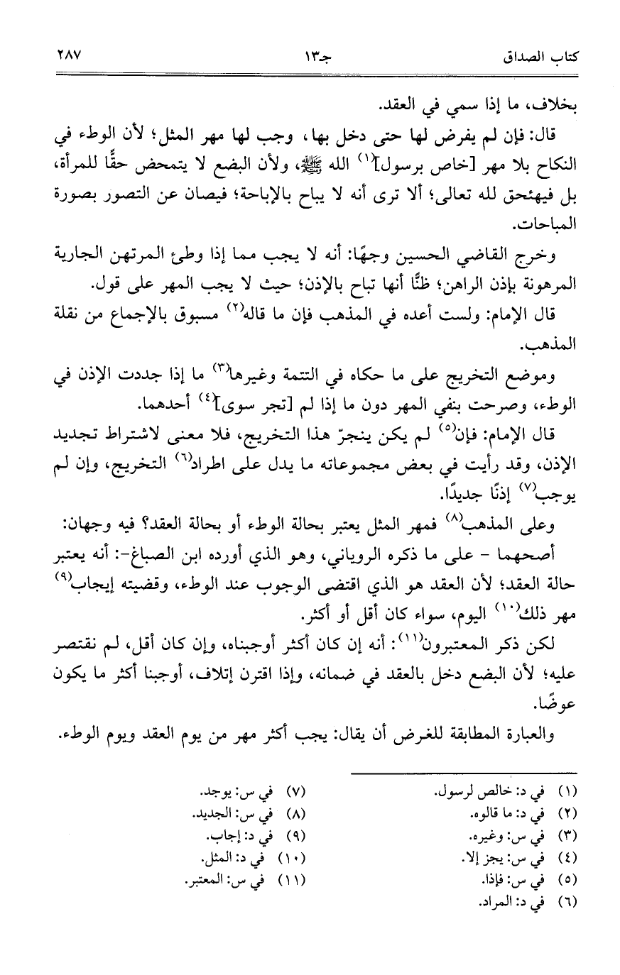 والعبارة المطابقة للغرض أن يقال: يجب أكثر مهر من يوم العقد ويوم الوطء.