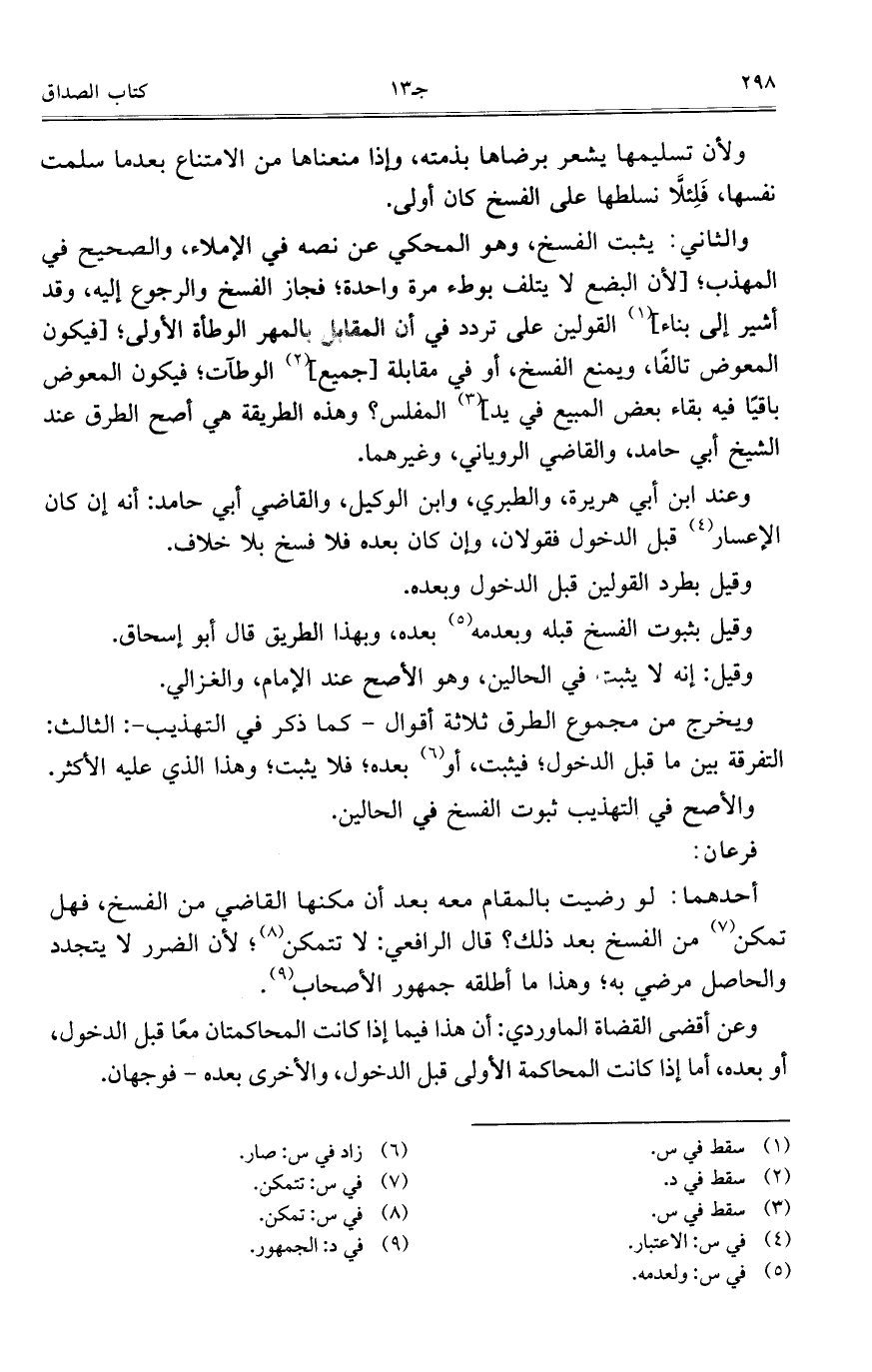 ويخرج من مجموع الطرق ثلاثة أقوال- كما ذكر في التهذيب-: الثالث: التفرقة بين ما قبل الدخول؛ فيثبت، أو بعده؛ فلا يثبت؛ وهذا الذي عليه الأكثر.