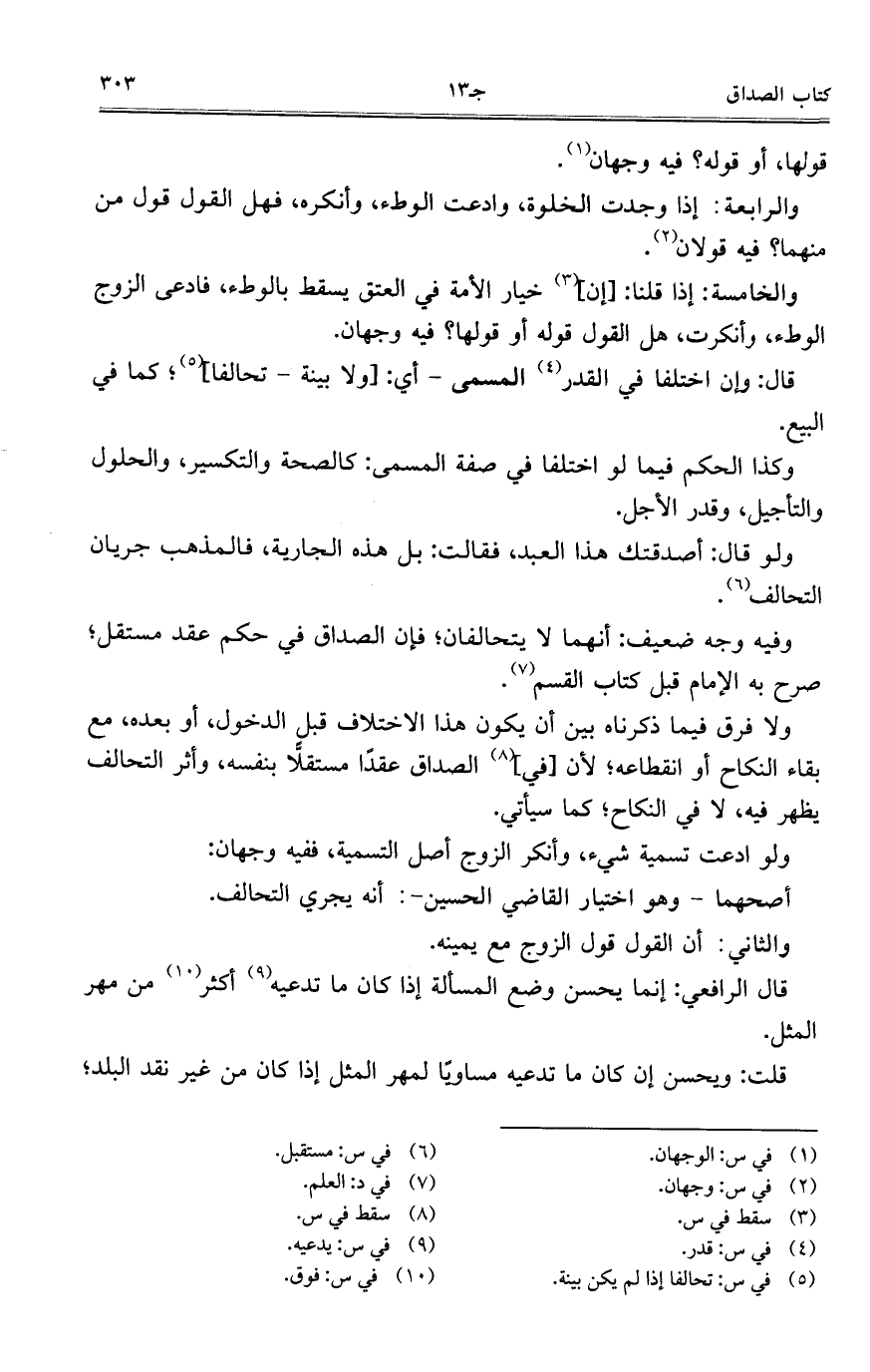 وفيه وجه ضعيف: أنهما لا يتحالفان؛ فإن الصداق في حكم عقد مستقل؛ صرح به الإمام قبل كتاب القسم.