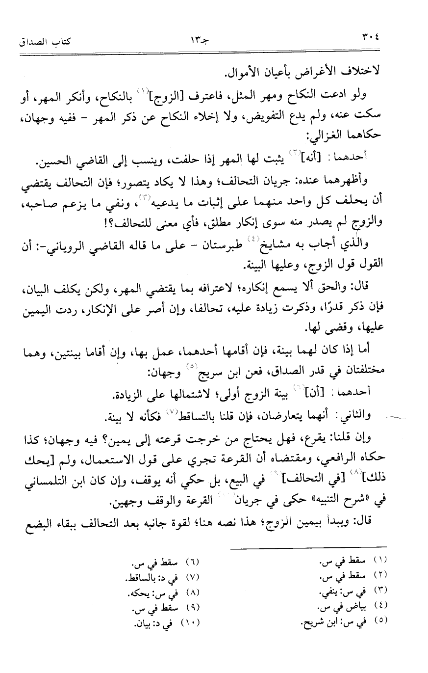 وأظهرهما عنده: جريان التحالف؛ وهذا لا يكاد يتصور؛ فإن التحالف يقتضي أن يحلف كل واحد منهما على إثبات ما يدعيه، ونفي ما يزعم صاحبه، والزوج لم يصدر منه سوى إنكار مطلق، فأي معنى للتحالف؟!