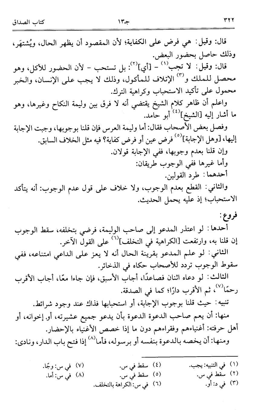 واعلم أن ظاهر كلام الشيخ يقتضي أنه لا فرق بين وليمة النكاح وغيرها، وهو ما أشار إليه [الشيخ] أبو حامد.