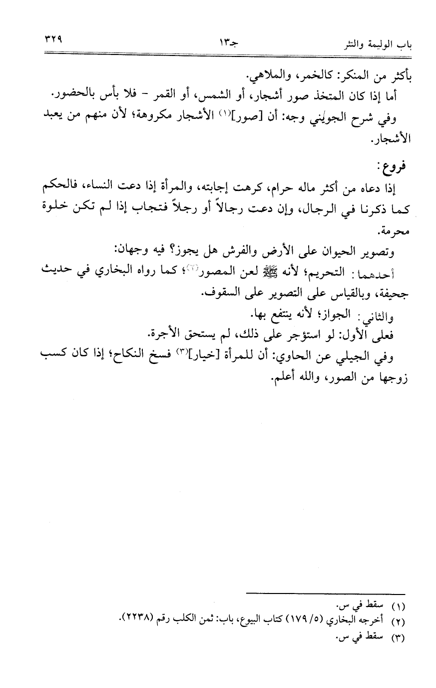 وفي الجيلي عن الحاوي: أن للمرأة [خيار] فسخ النكاح؛ إذا كان كسب زوجها من الصور، والله أعلم.