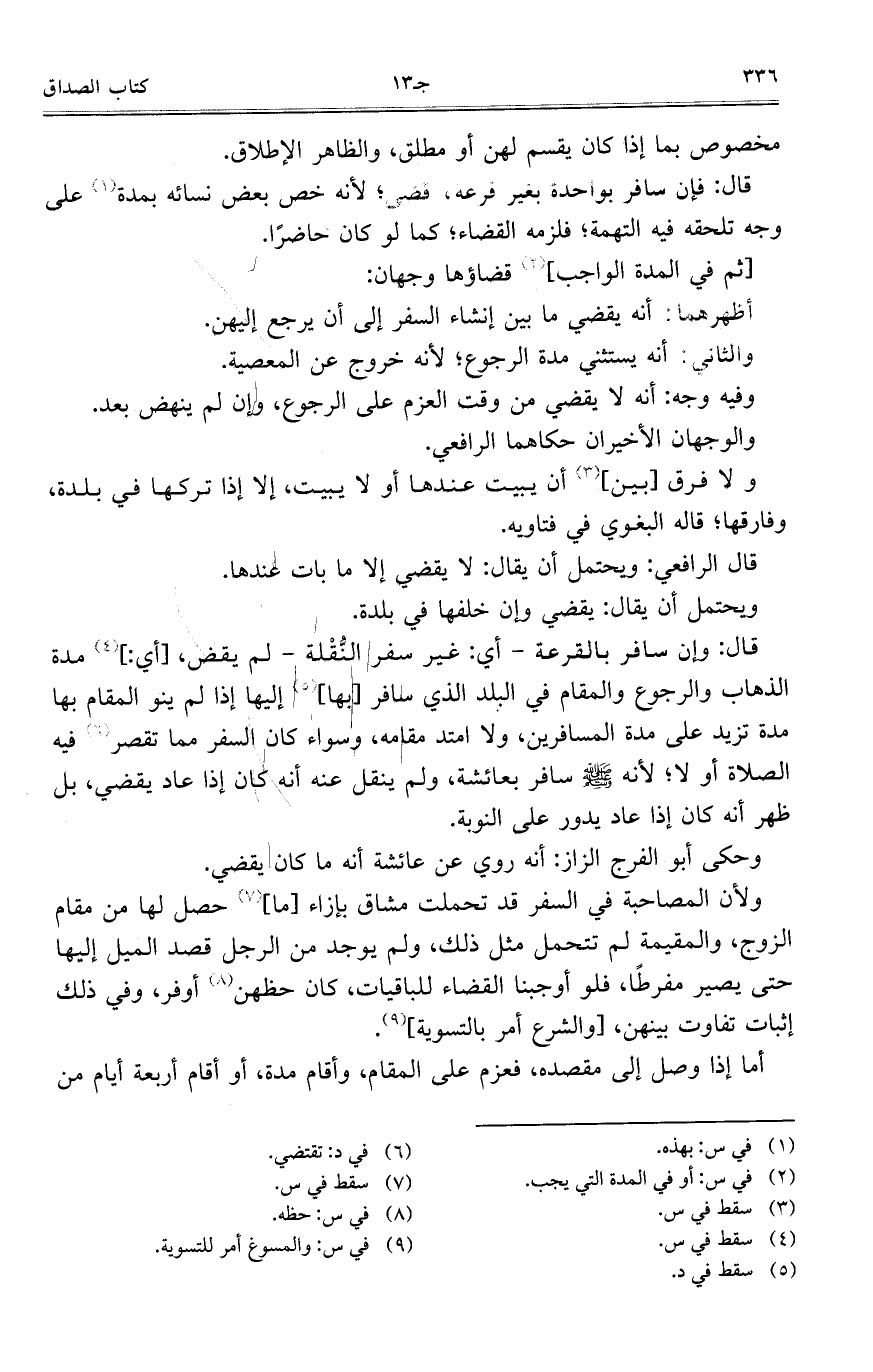 ولأن المصاحبة في السفر قد تحملت مشاق بإزاء [ما] حصل لها من مقام الزوج، والمقيمة لم تتحمل مثل ذلك، ولم يوجد من الرجل قصد الميل إليها حتى يصير مفرطاً، فلو أوجبنا القضاء للباقيات، كان حظهن أوفر، وفي ذلك إثبات تفاوت بينهن، [والشرع أمر بالتسوية].
