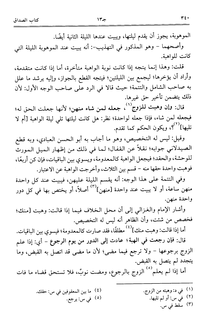 قلت: وهذا إنما يتجه إذا كانت نوبة الواهبة متأخرة، أما إذا كانت متقدمة، وأراد أن يؤخرها؛ ليجمع بين الليلتين؛ فيتجه القطع بالجواز، وإليه يرشد ما علل به صاحب الشامل والتتمة؛ حيث قالا في الرد على صاحب الوجه الأول: لأن ذلك يتضمن تأخير حق غيرها.