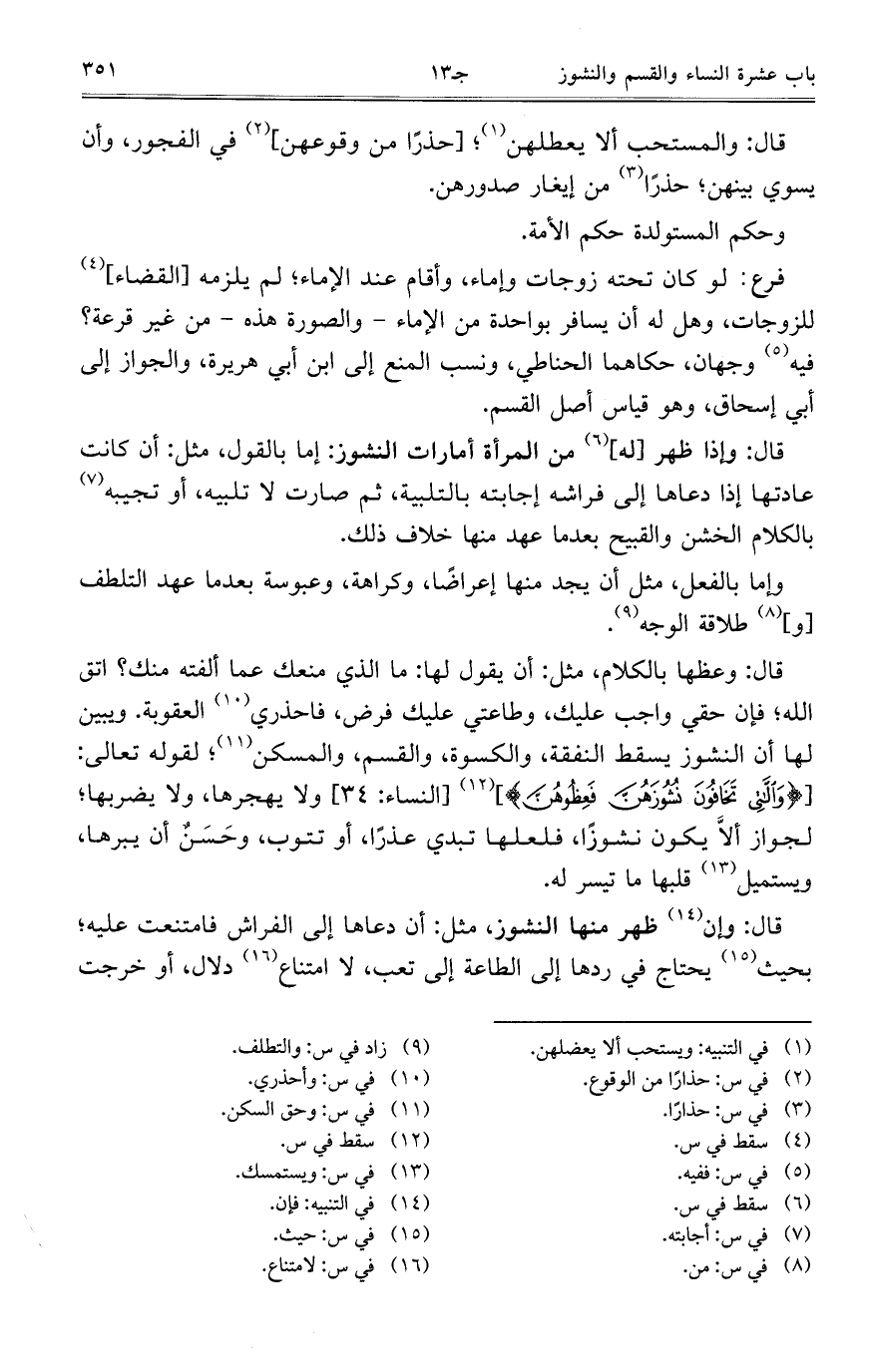 قال: والمستحب ألا يعطلهن؛ [حذراً من وقوعهن] في الفجور، وأني سوي بينهن؛ حذراً من إيغار صدورهن.