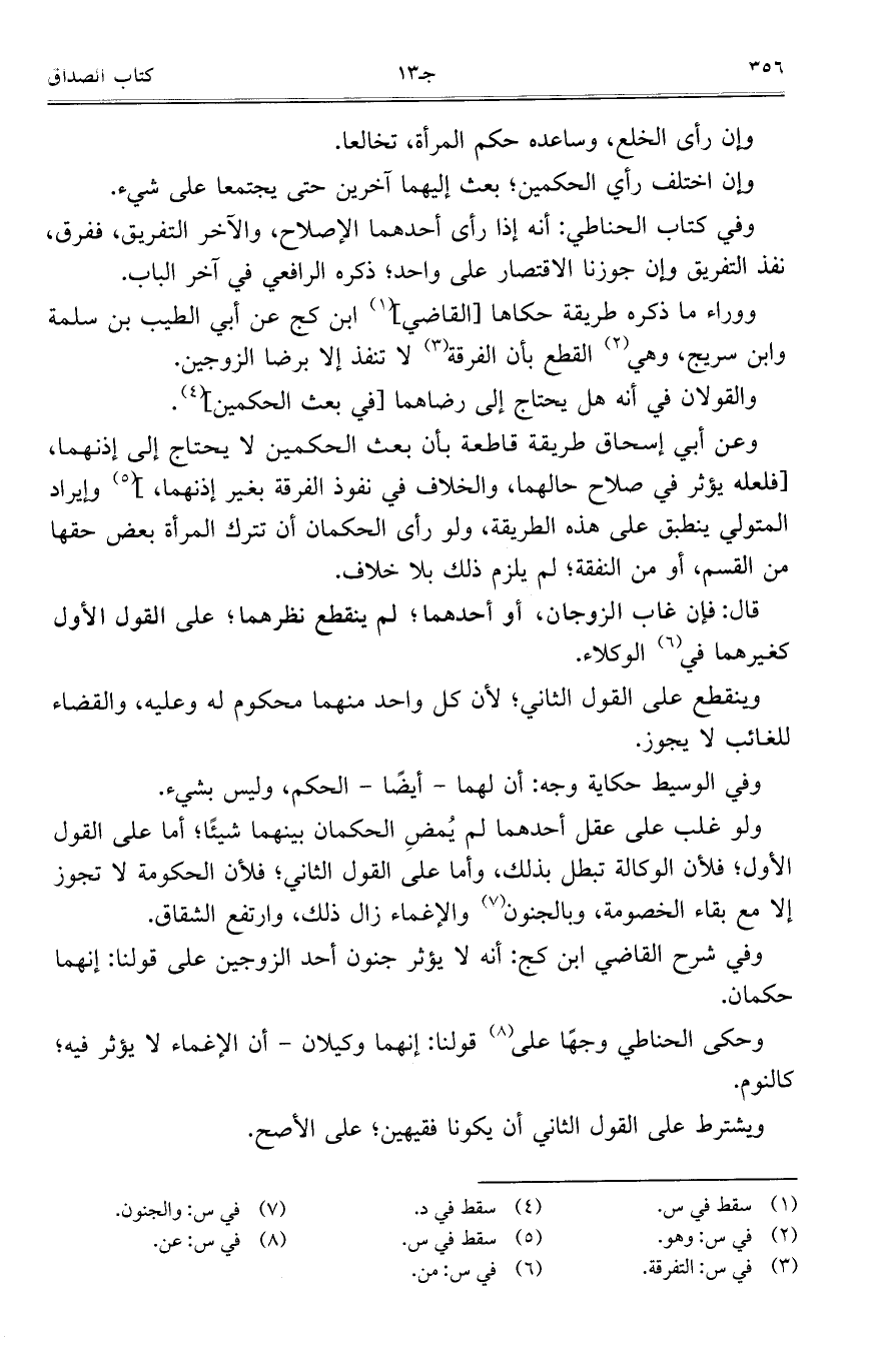 وعن أبي إسحاق طريقة قاطعة بأن بعث الحكمين لا يحتاج إلى إذنهما، [فلعله يؤثر في صلاح حالهما، والخلاف في نفوذ الفرقة بغير إذنهما،] وإيراد المتولي ينطبق على هذه الطريقة، ولو رأى الحكمان أن تترك المرأة بعض حقها من القسم، أو من النفقة؛ لم يلزم ذلك بلا خلاف.