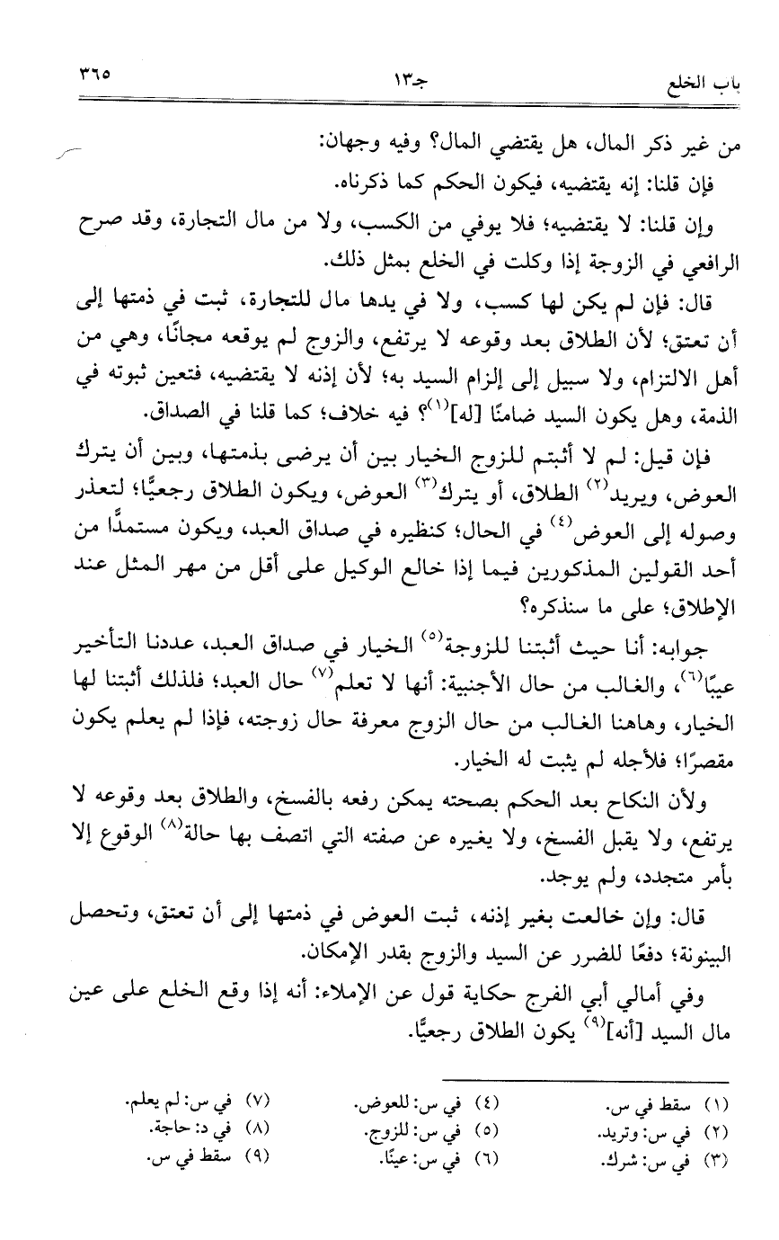 فإن قيل: لم لا أثبتم للزوج الخيار بين أن يرضى بذمتها، وبين أن يترك العوض، ويريد الطلاق، أو يترك العوض، ويكون الطلاق رجعيّاً؛ لتعذر وصوله على العوض في الحال؛ كنظيره في صداق العبد، ويكون مستمدّاً من أحد القولين المذكورين فيما إذا خالع الوكيل على أقل من مهر المثل عند الإطلاق؛ على ما سنذكره؟
