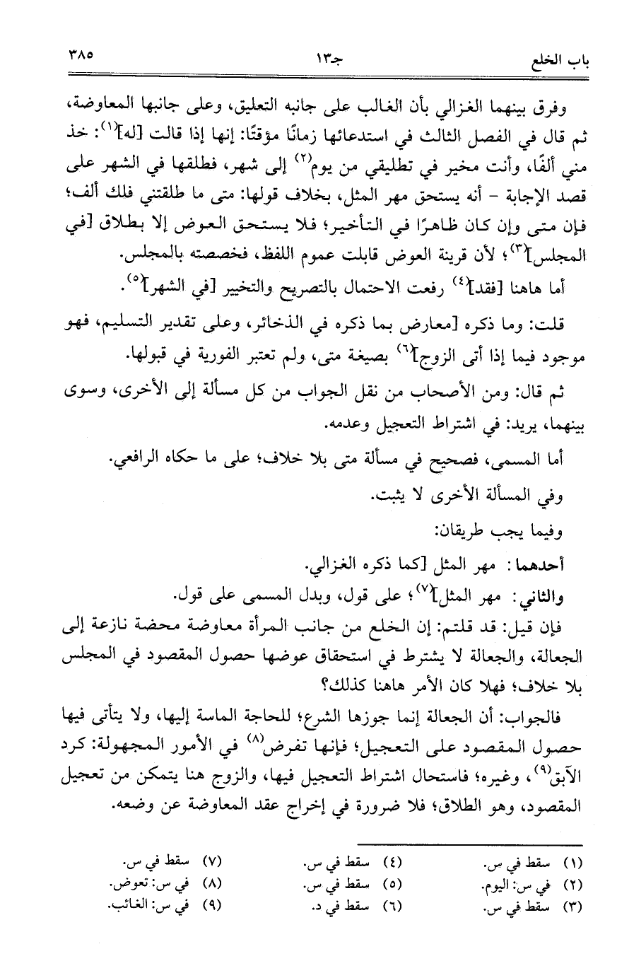 ثم قال: ومن الأصحاب من نقل الجواب من كل مسألة إلى الأخرى، وسوى بينهما، يريد: في اشتراط التعجيل وعدمه.