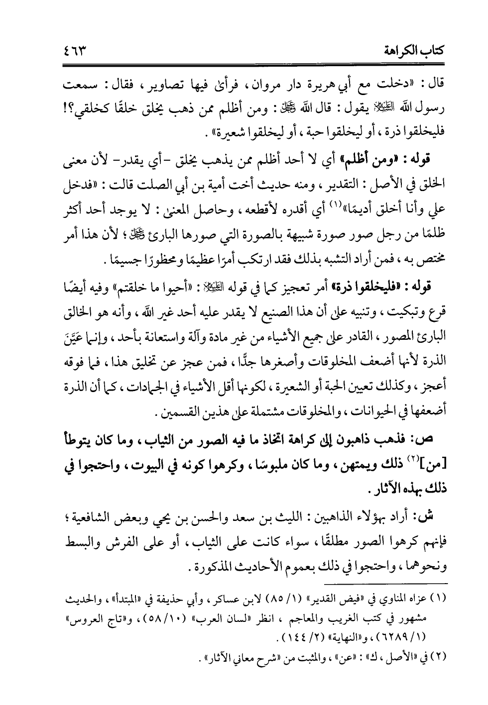 قال: "دخلت مع أبي هريرة دار مروان، فرأى فيها تصاوير، فقال: سمعت رسول الله -عليه السلام- يقول: قال الله -عز وجل-: ومن أظلم ممن ذهب يخلق خلقًا كخلقي؟! فليخلقوا ذرة، أو ليخلقوا حبة، أو ليخلقوا شعيرة".