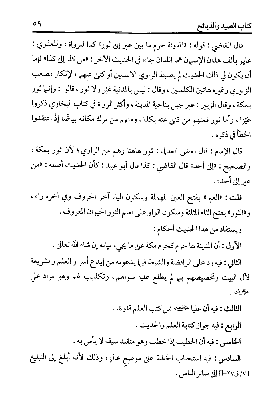 قال الإِمام: قال بعض العلماء: ثور ها هنا وهم من الراوي؛ لأن ثور بمكة، والصحيح: "إلى أحد" قال القاضي: كذا قال أبو عبيد: كأن الحديث أصله: "من عير إلى أحد".