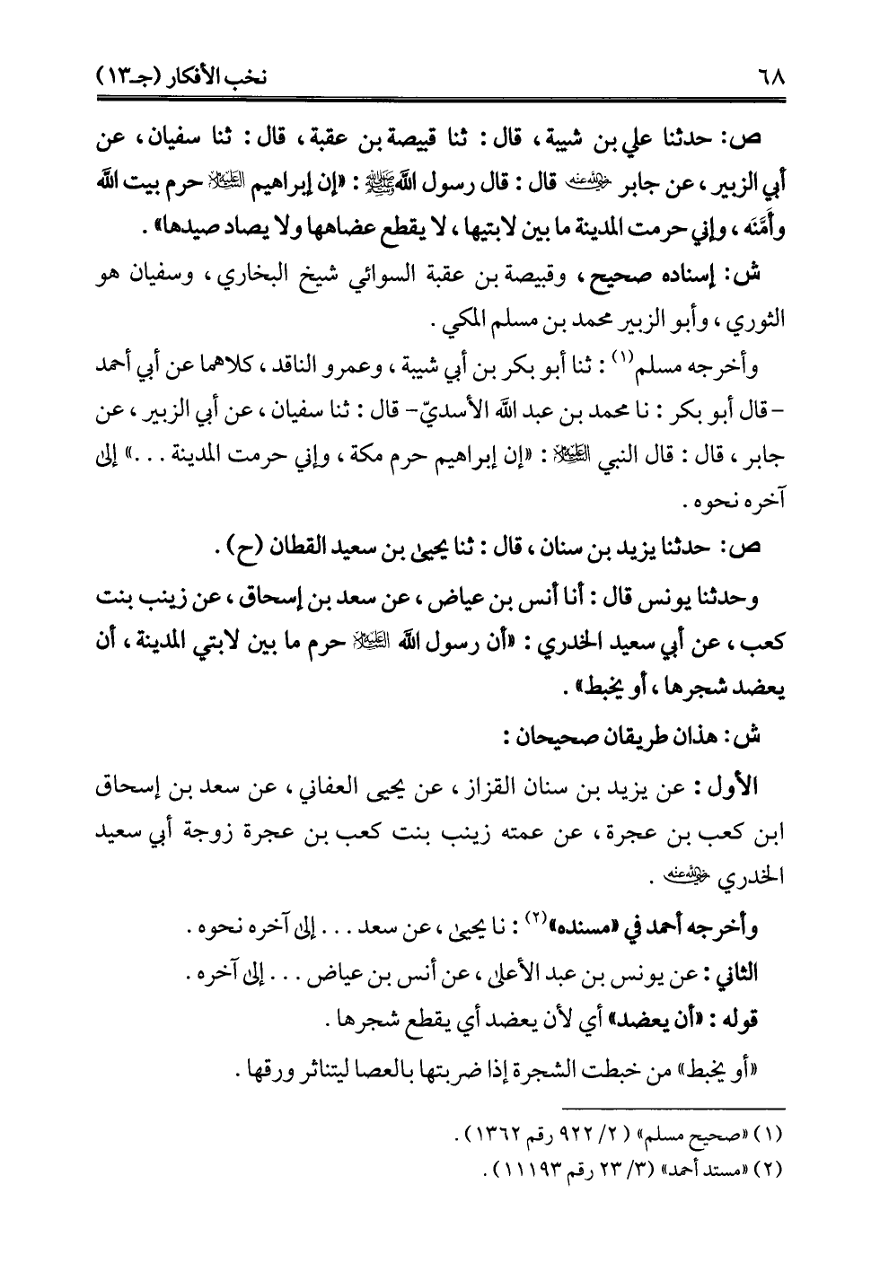 وأخرجه مسلم (¬1): ثنا أبو بكر بن أبي شيبة، وعمرو الناقد، كلاهما عن أبي أحمد -قال أبو بكر: نا محمد بن عبد الله الأسديّ- قال: ثنا سفيان، عن أبي الزبير، عن جابر، قال: قال النبي -عليه السلام-: "إن إبراهيم حرم مكة، وإني حرمت المدينة. . . " إلى آخره نحوه.