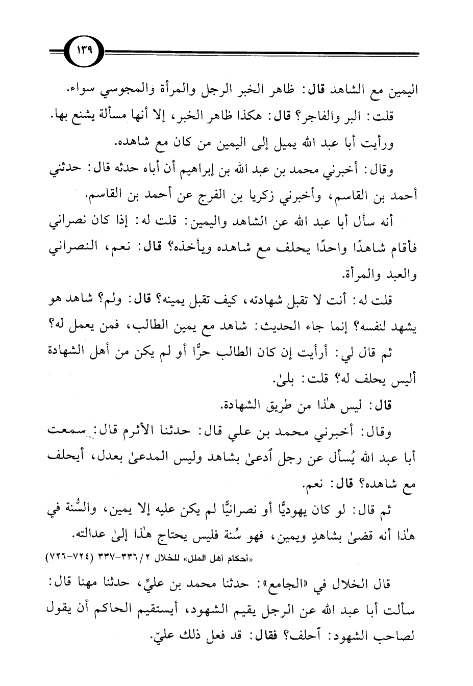 "أحكام أهل الملل" للخلال 2/ 336 - 337 (724 - 726)