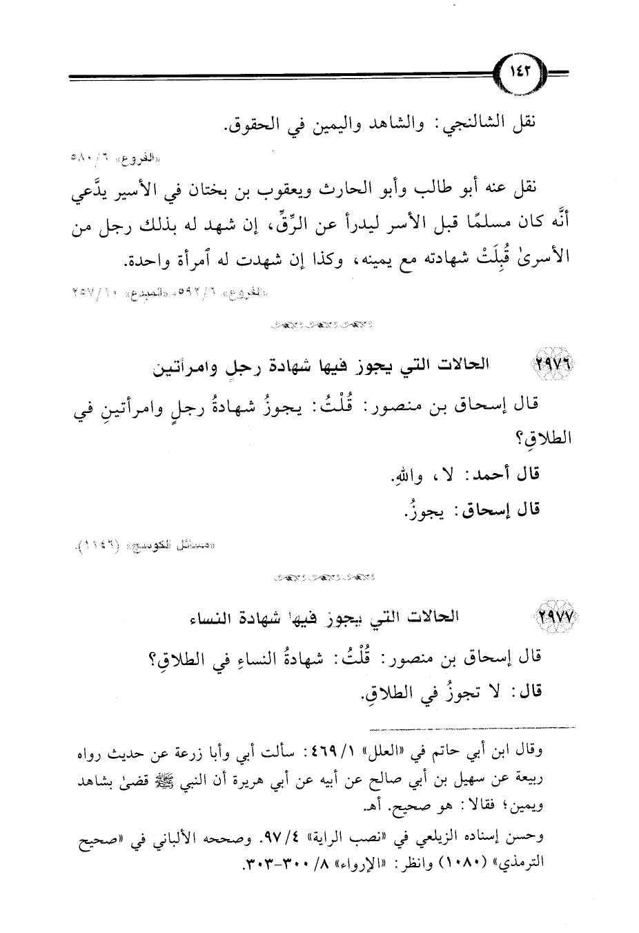 قال إسحاق بن منصور: قُلْتُ: شهادةُ النساءِ في الطلاقِ؟
