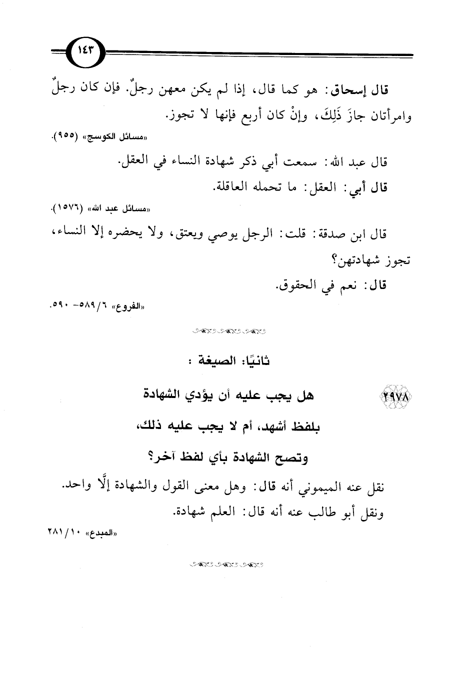 قال عبد اللَّه: سمعت أبي ذكر شهادة النساء في العقل.