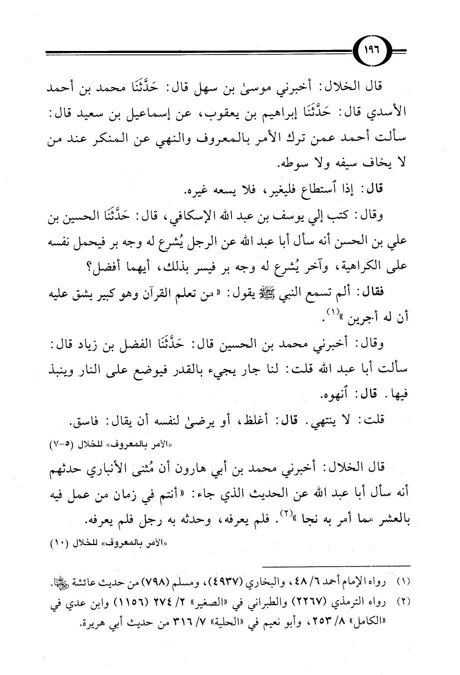 قال الخلال: أخبرني موسى بن سهل قال: حَدَّثَنَا محمد بن أحمد الأسدي قال: حَدَّثَنَا إبراهيم بن يعقوب، عن إسماعيل بن سعيد قال: سألت أحمد عمن ترك الأمر بالمعروف والنهي عن المنكر عند من لا يخاف سيفه ولا سوطه.