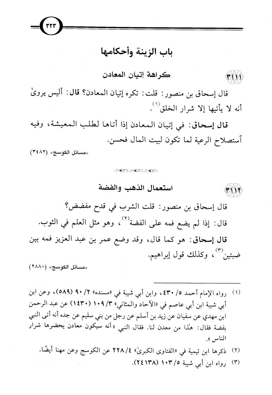 قال إسحاق بن منصور: قلت: تكره إتيان المعادن؟ قال: أليس يروى أنه لا يأتيها إلا شرار الخلق (¬1).