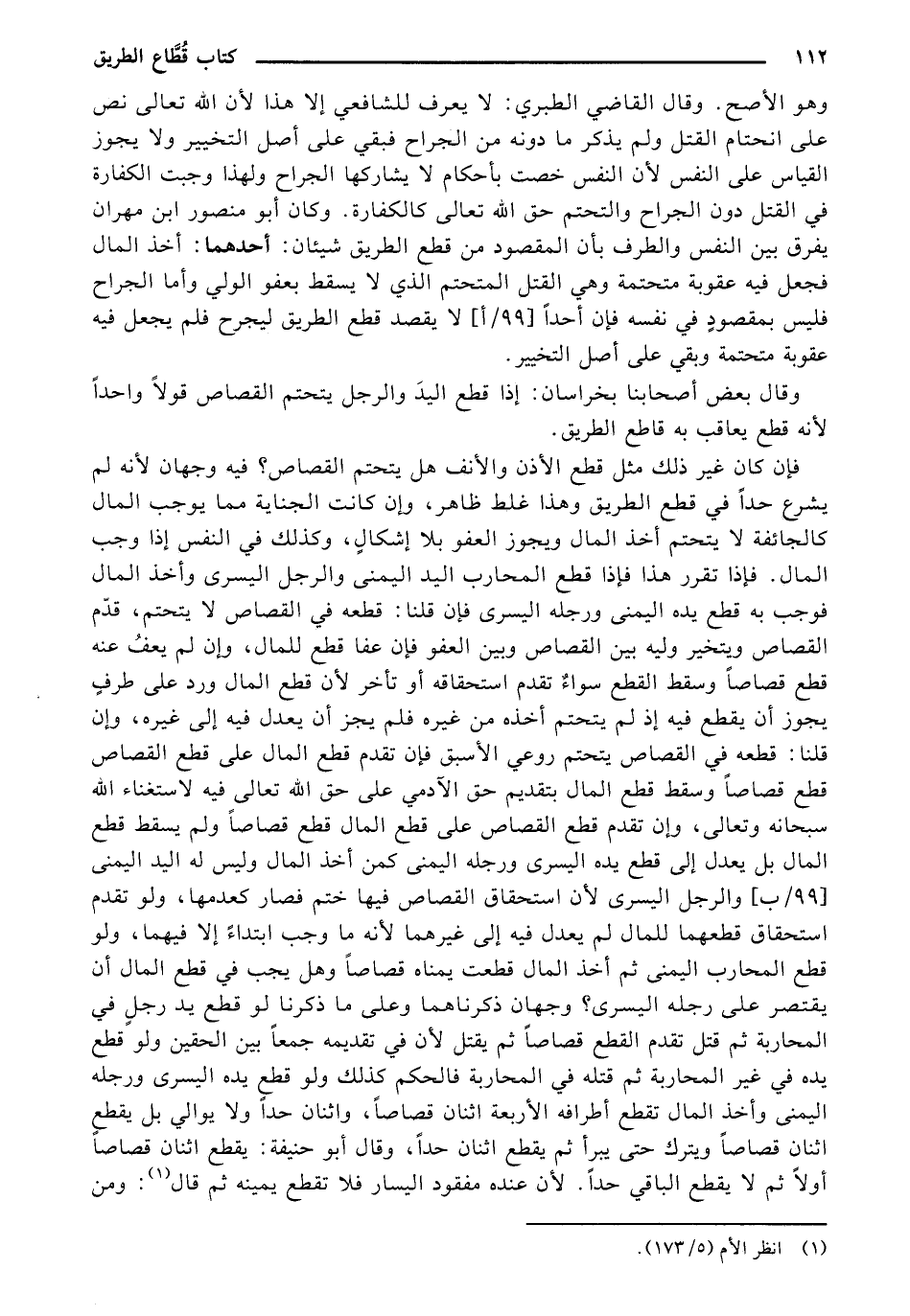 وهو الأصح. وقال القاضي الطبري: لا يعرف للشافعي إلا هذا لأن الله تعالى نص على انحتام القتل ولم يذكر ما دونه من الجراح فبقي على أصل التخيير ولا يجوز القياس على النفس لأن النفس خصت بأحكام لا يشاركها الجراح ولهذا وجبت الكفارة في القتل دون الجراح والتحتم حق الله تعالى كالكفارة، وكان أبو منصور ابن مهران يفرق بين النفس والطرف بأن المقصود من قطع الطريق شيئان: أحدهما: أخذ المال فجعل فيه عقوبة متحتمة وهي القتل المتحتم الذي لا يسقط بعفو الولي وأما الجراح فليس بمقصود في نفسه فإن أحدًا [99/أ] لا يقصد قطع الطريق ليجرح فلم يجعل فيه عقوبة متحتمة وبقي على أصل التخيير.