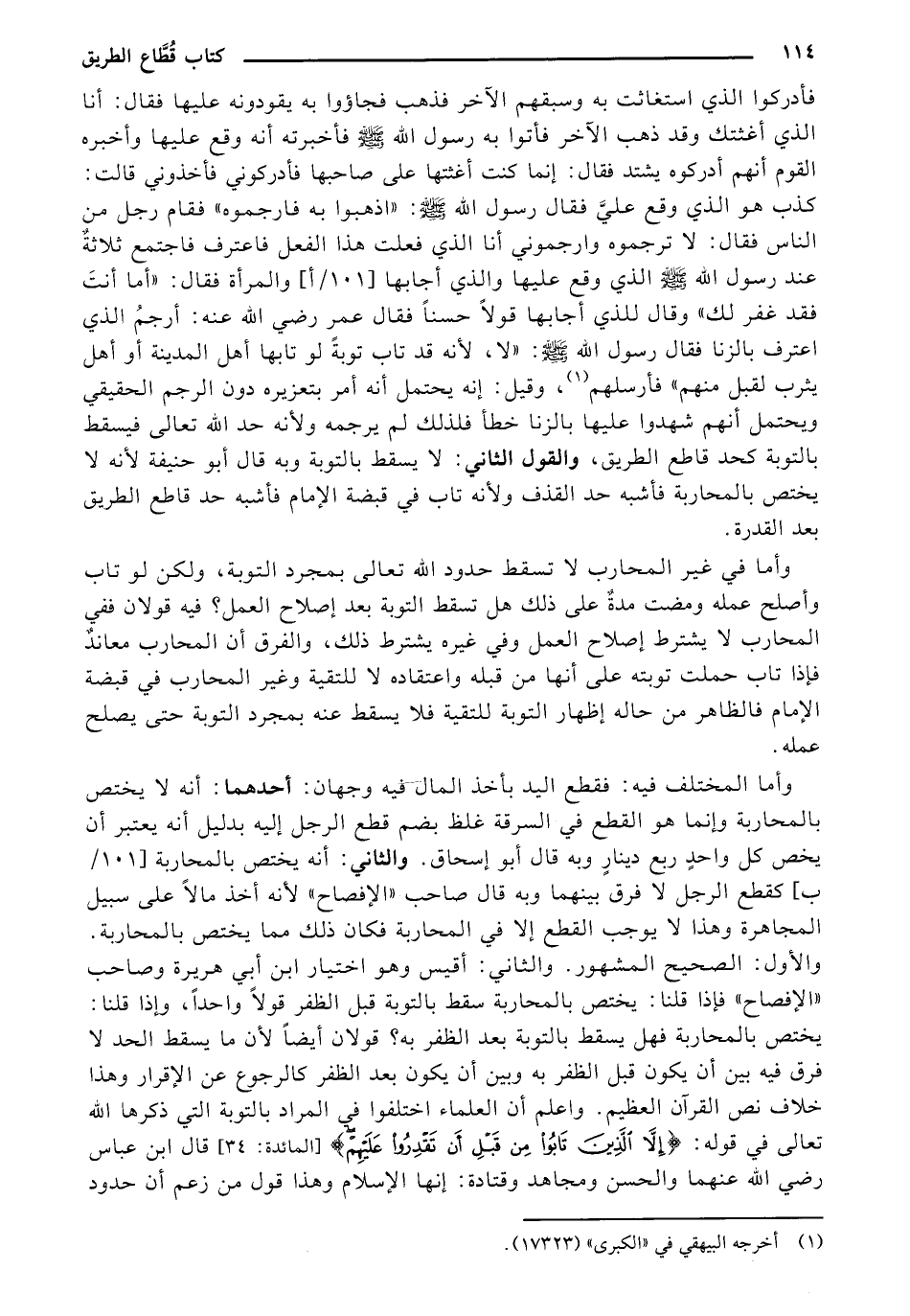 فأدركوا الذي استغاثت به وسبقهم الآخر فذهب فجاءوا به يقودونه عليها فقال: أنا الذي أغثتك وقد ذهب الآخر فأتوا به رسول الله صلى الله عليه وسلم فأخبرته أنه وقع عليها وأخبره القوم أنهم أدركوه يشتد فقال: إنما كنت أغثتها على صاحبها فأدركوني فأخذوني قال: كذب هو الذي وقع عليَّ فقال رسول الله صلى الله عليه وسلم: "اذهبوا به فارجموه" فقام رجل من الناس فقال: لا ترجموه وارجموني أنا الذي فعلت هذا الفعل فاعترف فاجتمع ثلاثةٌ عند رسول الله صلى الله عليه وسلم الذي وقع عليها والذي أجابها [101/أ] والمرأة فقال: "أما أنتَ فقد غفر لك" وقال للذي أجابها قولًا حسنًا فقال عمر رضي الله عنه: أرجمُ الذي اعترف بالزنا فقال رسول الله صلى الله عليه وسلم:" لا، لأنه قد تاب توبةً لو تابها أهل المدينة، أو أهل يثرب لقبل منهم" فأرسلهم، وقيل: إنه يحتمل أنه أمر بتعزيره دون الرجم الحقيقي ويحتمل أنهم شهدوا عليها بالزنا خطأ فلذلك لم يرجمه ولأنه حد الله تعالى فيسقط بالتوبة كحد قاطع الطريق، والقول الثاني: لا يسقط بالتوبة وبه قال أبو حنيفة لأنه لا يختص بالمحاربة فأشبه حد القذف ولأنه تاب في قبضة الإمام فأشبه حد قاطع الطريق بعد القدرة.