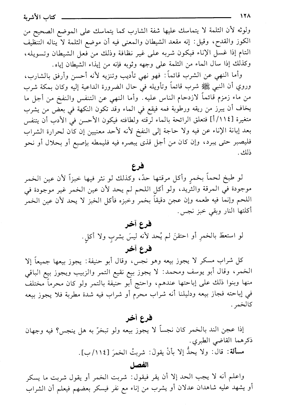 واعلم أنه لا يجب الحد إلا أن يقر فيقول: شربت الخمر أو يقول شربت ما يسكر أو يشهد عليه شاهدان عدلان أو يشرب من إناء مع نفر فيسكر بعضهم فيعلم أن الشراب