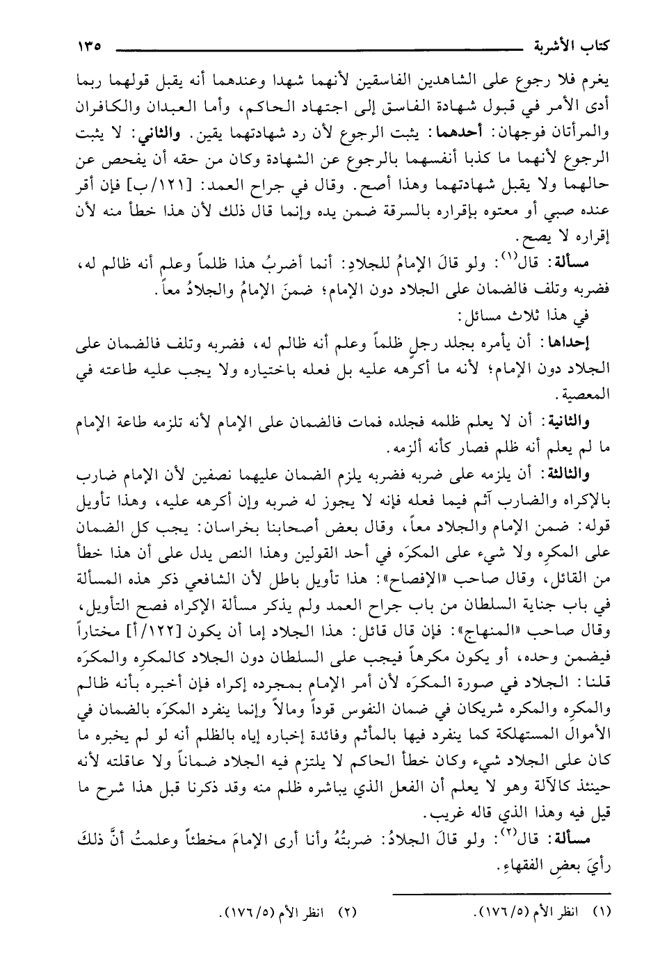 والثالثة: أن يلزمه على ضربه فضربه يلزم الضمان عليهما نصفين لأن الإمام ضارب بالإكراه والضارب آثم فيما فعله فإنه لا يجوز له ضربه وإن أكرهه عليه، وهذا تأويل قوله: ضمن الإمام والجلاد معا، وقال بعض أصحابنا بخراسان: يجب كل الضمان على المكره ولا شيء على المكره في أحد القولين وهذا النص يدل على أن هذا الخطأ من القائل، وقال صاحب (الإفصاح): هذا تأويل باطل لأن الشافعي ذكر هذه المسألة في باب جناية السلطان من باب جراح العمد ولم يذكر مسألة الإكراه فصح التأويل، وقال صاحب (المنهاج): فإن قال قائل: هذا الجلاد إما أن يكون [122/أ] مختارا فيضمن وحده، أو يكون مكرها فيجب على السلطان دون الجلاد كالمكره والمكره قلنا: الجلاد في صوره المكره لأن أمر الإمام بمجرده إكراه فإن أخبره بأنه ظالم والمكره والمكره شريكان في ضمان النفوس قودًا ومالًا وإنما ينفرد المكره بالضمان في الأموال المستهلكة كما ينفرد فيها بالمأثم وفائدة إخباره إياه بالظلم أنه لو لم يخبره ما كان على الجلاد شيء وكان خطأ الحاكم لا يلتزم فيه الجلاد ضمانا ولا عاقلته لأنه حينئذ كالآلة وهو لا يعلم أن الفعل الذي يباشره ظلم منه وقد ذكرنا قبل هذا شرح ما قيل فيه وهذا الذي قاله غريب.