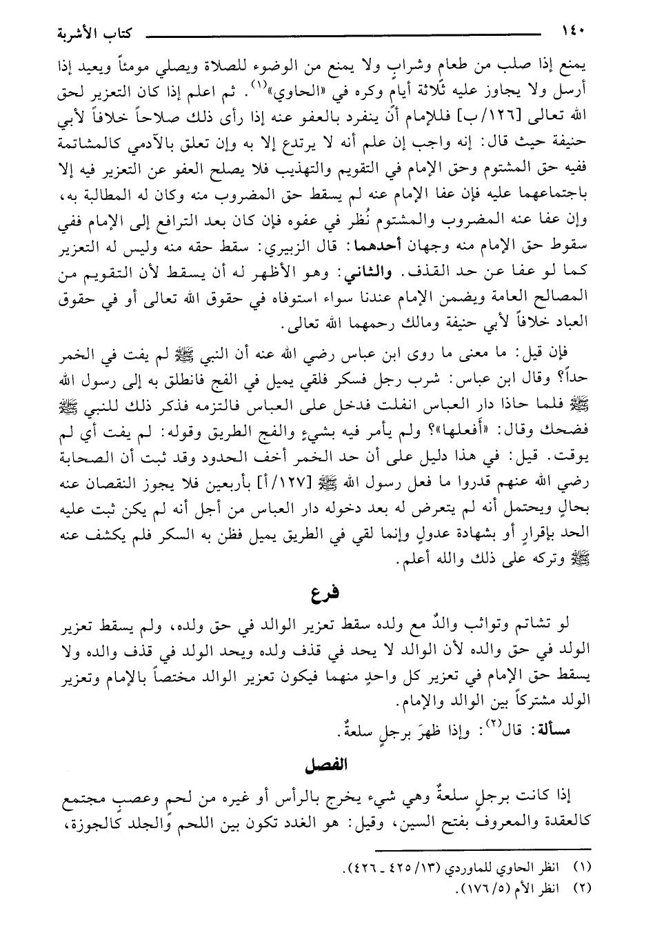 فإن قيل: ما معني ما روى ابن عباس رضي الله عنه أن النبي صلي الله عليه وسلم لم يفت في الخمر حدا؟ وقال ابن عباس: شرب رجل فسكر فلقي يميل في الفج فانطلق به إلى رسول الله صلي الله عليه وسلم فلما حاذا دار العباس انفلت فدخل على العباس فالتزمه فذكر ذلك للنبي صلي الله عليه وسلم فضحك وقال: ((أفعلها" ولم يأمر فيه بشيء والفج الطريق وقوله: لم يفت أي لم يوقت. قيل: في هذا دليل على أن الخمر أخف الحدود وقد ثبت أن الصحابة رضي الله عنهم قدروا ما فعل رسول الله صلي الله عليه وسلم [127/أ] بأربعين فلا يجوز النقصان عنه بحال ويحتمل أنه لم يتعرض له بعد دخوله دار العباس من أجل أنه لم يكن ثبت عليه الحد بإقرار أو بشهادة عدول وإنما لقي في الطريق يميل فظن به السكر فلم يكشف عنه صلي الله عليه وسلم وتركه على ذلك والله أعلم.