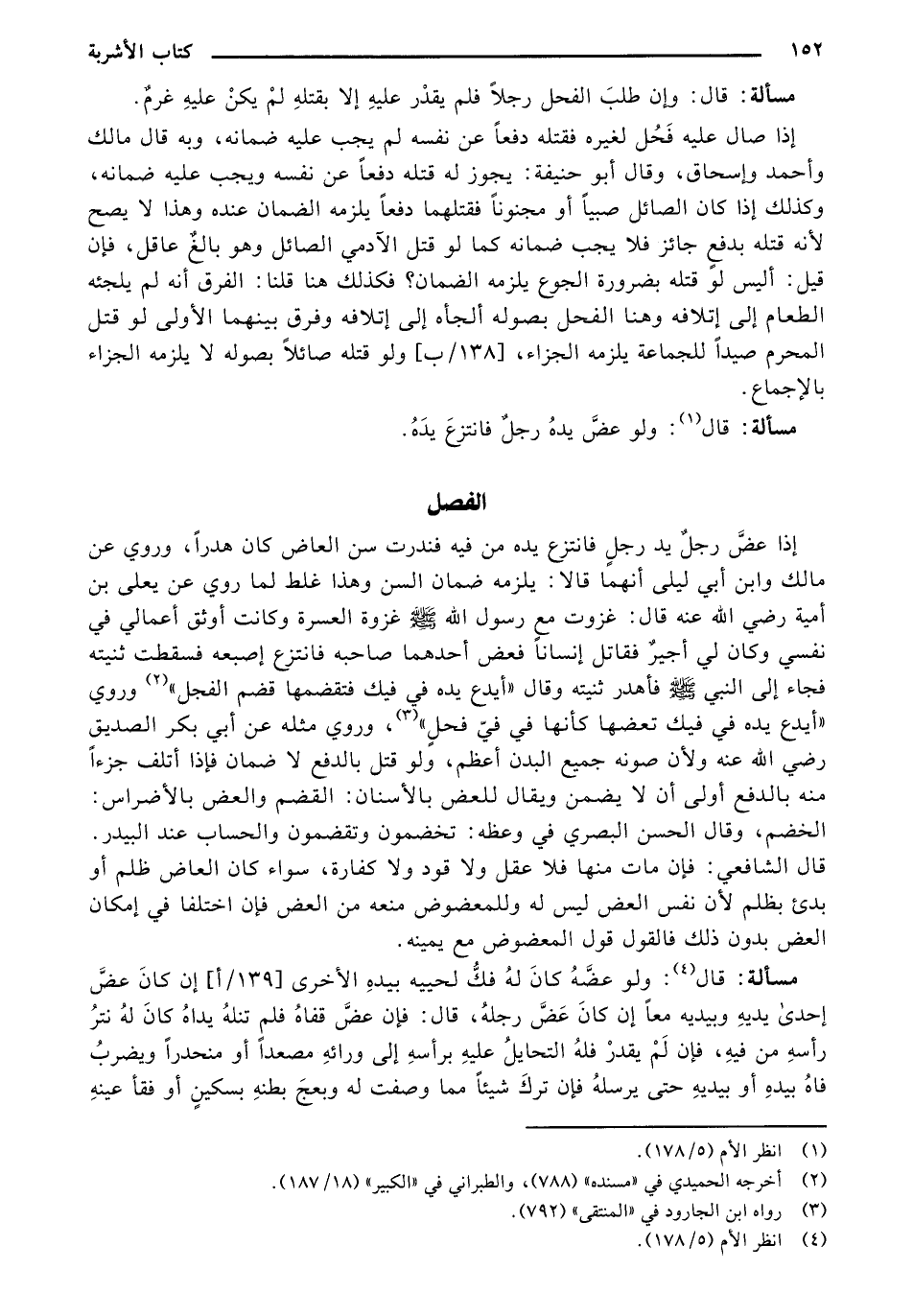 وإذا صال عليه فحل لغيره فقتله دفعًا عن نفسه لم يجب عليه ضمانه، وبه قال مالك وأحمد وإسحاق، وقال أبو حنيفة: يجوز له قتله دفعًا عن نفسه ويجب عليه ضمانه، وكذلك إذا كان الصائل صبيًا أو مجنونًا فقتلهما دفعًا يلزمه الضمان عنده وهذا لا يصح لأنه قتله بدفع جائز فلا يجب ضمانه كما لو قتل الآدمي الصائل وهو بالغ عاقل، فإن قيل: أليس لو قتله بضرورة الجوع يلزمه الضمان؟ فكذلك هنا قلنا: الفرق أنه لم يلجئه الطعام إلى إتلافه وهنا الفحل بصوله ألجأه إلى إتلافها لفرق بينهما الأولى لو قتل المحرم صيدًا للجماعة يلزمه الجزاء، [138/ب] ولو قتله صائلًا بصوله لا يلزمه الجزاء بالإجماع.