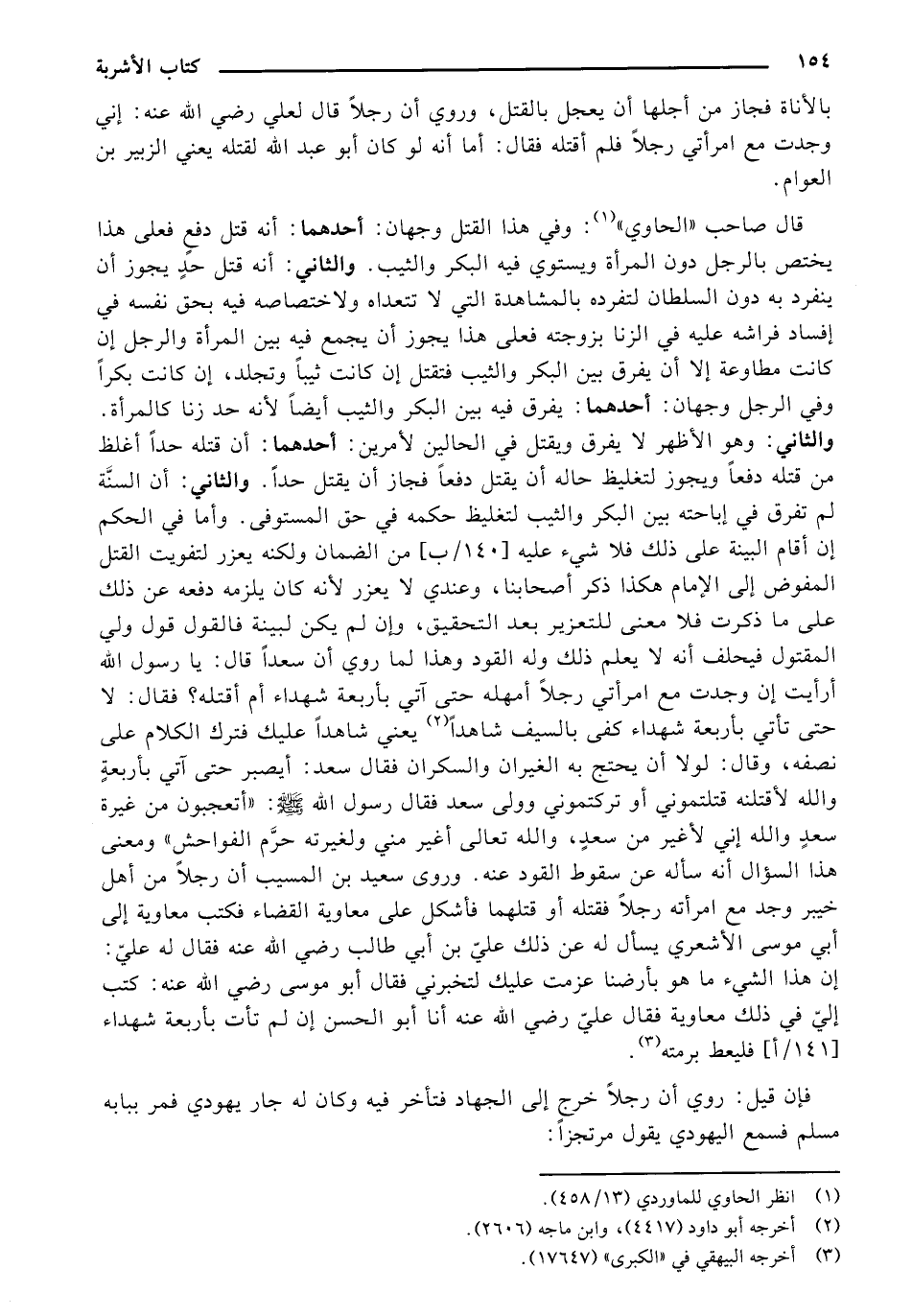 قال صاحب (الحاوي): وفي هذا القتل وجهان: أحدهما: أنه قتل دفع فعلى هذا يختص بالرجل دون المرأة ويستوي فيه البكر والثيب. والثاني: أنه قتل حد يجوز أن ينفرد به دون السلطان لتفرده بالمشاهدة التي لا تتعداه ولاختصاصه فيه بحق نفسه في إفساد فراشه عليه في الزنا بزوجته فعلى هذا يجوز أن يجمع فيه بين المرأة والرجل إن كانت مطاوعة إلا أن يفرق بين البكر والثيب فتقتل إن كانت ثيبًا وتجلد، إن كانت بكرًا وفي الرجل وجهان: أحدهما: يفرق فيه بين البكر والثيب أيضًا لأنه حد زنا كالمرأة. والثاني: وهو الأظهر لا يفرق ويقتل في الحالين لأمرين: أحدهما: أن قتله حدًا أغلظ من قتله دفعًا ويجوز لتغليظ حاله أن يقتل دفعًا فجاز أن يقتل حدًا. والثاني: أن السنة لم تفر في إباحته بين البكر والثيب لتغليظ حكمه في حق المستوفى. وأما في الحكم إن أقام البينة على ذلك فلا شيء عليه [140/ب] من الضمان ولكنه يعزر لتفويت القتل المفوض إلى الإمام هكذا ذكر أصحابنا، وعندي لا يعزر لأنه كان يلزمه دفعه عن ذلك على ما ذكرت فلا معنى للتعزير بعد التحقيق، وإن لم يكن لبينة فالقول قول ولي المقتول فيحلف أنه لا يعلم ذلك وله القود وهذا لما روي أن سعدًا قال: يا رسول الله أرأيت إن وجدت مع امرأتي رجلًا أمهله حتى آتي بأربعة شهداء أأقتله؟ فقال: لا حتى تأتي بأربعة شهداء كفى بالسيف شاهدًا يعني شاهدًا عليك فترك الكلام على نصفه، وقال: لولا أن يحتج به الغيران والسكران فقال سعد: أيصبر حتى آتي بأربعة والله لأقتلنه قتلتموني أو تركتموني وولى سعد فقال رسول الله صلى الله عليه وسلم: "أتعجبون من غيرة سعد والله إني لأغير من سعد، والله تعالى أغير مني ولغيرته حرم الفواحش" ومعنى هذا السؤال أنه سأله عن سقوط القود عنه. وروى سعيد بن المسيب أن رجلًا من أهل خيبر وجد مع امرأته رجلًا فقتله أو قتلهما فأشكل على معاوية القضاء فكتب معاوية إلى أبي موسى الأشعري يسأل له عن ذلك علي بن أبي طالب رضي الله عنه: كتب إلى في ذلك معاوية فقال علي رضي الله عنه أنا أبو الحسن إن لم تأت بأربعة شهداء [141/ أ] فليعط برمته.