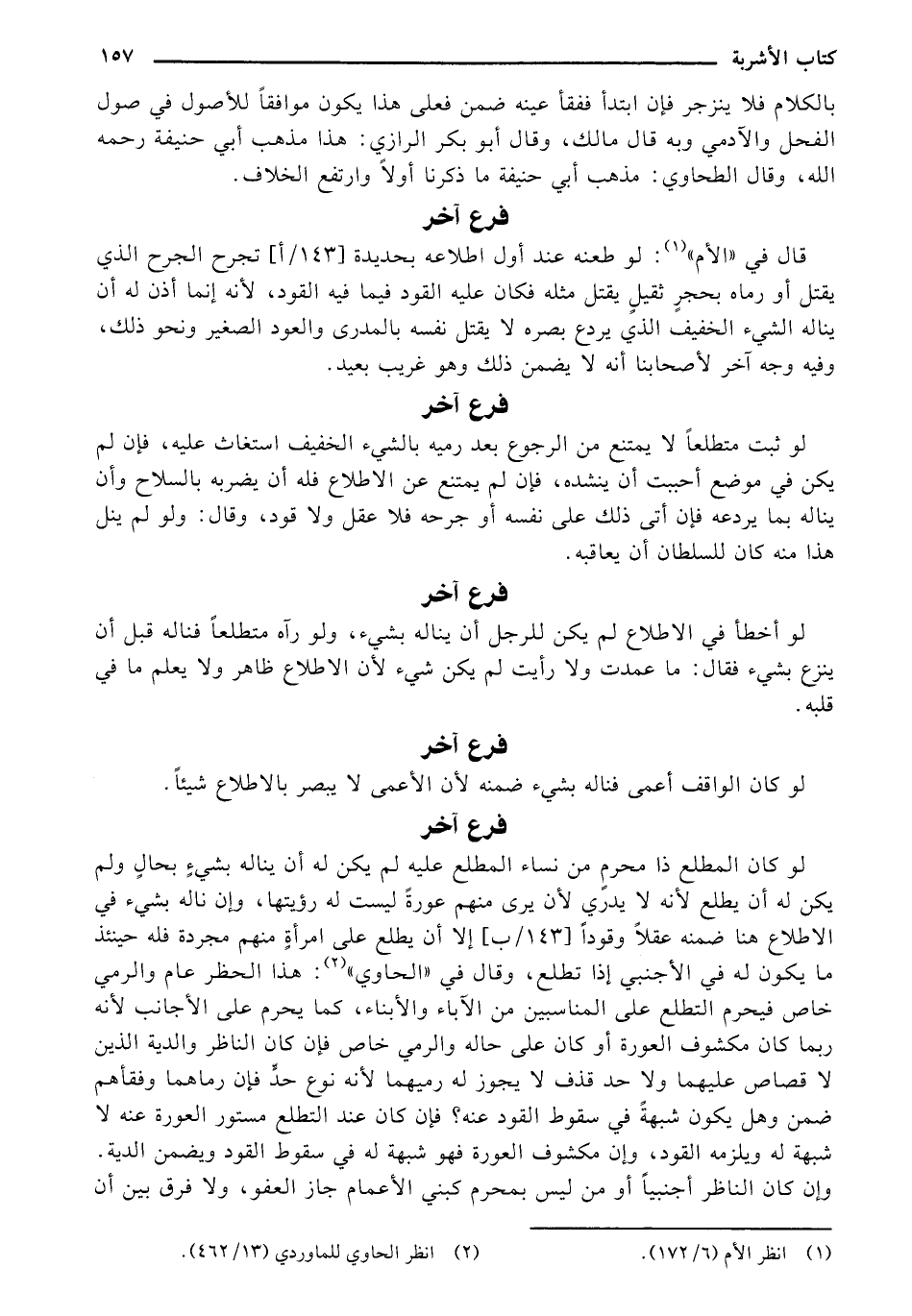 لو كان المطلع ذا محرم من نساء المطلع عليه لم يكن له أن يناله بشيء بحال ولم يكن له أن يطلع لأنه لا يدري لأن يرى منهم عورة ليست له رؤيتها، وإن ناله بشيء في الاطلاع هنا ضمنه عقلًا وقودًا [143/ب] إلا أن يطلع على امرأة منهم مجردة فله حينئذ ما يكون له في الأجنبي إذا تطلع، وقال في (الحاوي): هذا الحظر عام والمري خاص فيحرم التطلع على المناسبين من الآباء والأبناء، كما يحرم على الأجانب لأنه ربما كان مكشوف العورة أو كان على حاله والرمي خاص فإن كان الناظر والدية الذين لا قصاص عليهما ولا حد قذف لا يجوز له رميهما لأنه نوع حد فإن رماهما وفقأهم ضمن وهل يكون شبهة في سقوط القود عنه؟ فإن كان عند التطلع مستور العورة عنه لا شبهة له يلزمه القود، وإن مكشوف العورة فهو شبهة له في سقوط القود ويضمن الدية. وإن كان الناظر أجنبيًا أو من ليس بمحرم كبني الأعمام جاز العفو، ولا فرق بين أن