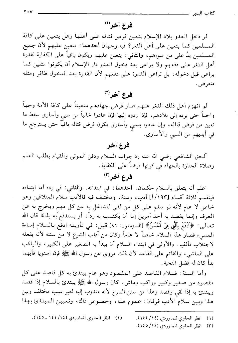 ألحق الشافعي رضي الله عنه رد جواب السلام وفن الموتى والقيام بطلب العلم وصلاة الجنازة بالجهاد في كونها فرضًا على الكفاية.