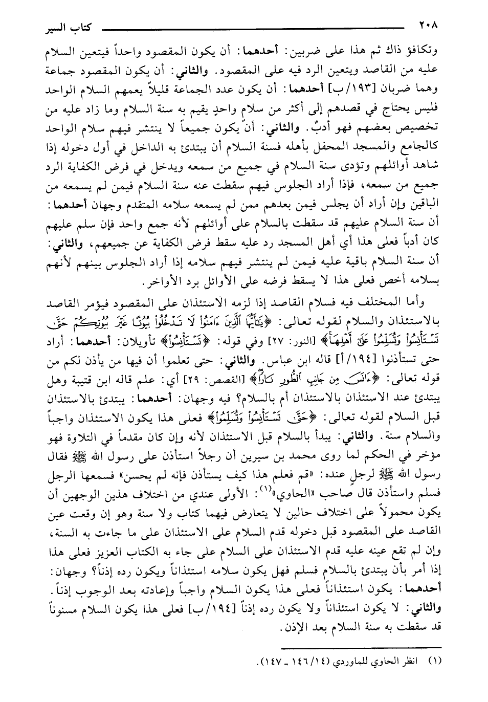 وأما المختلف فيه فسلام القاصد إذا لزمه الاستئذان على المقصود فيؤمر القاصد بالاستئذان والسلام لقوله تعالى: {يَا أَيُّهَا الَّذِينَ آمَنُوا لاَ تَدْخُلُوا بُيُوتًا غَيْرَ بُيُوتِكُمْ حَتَّى تَسْتَانِسُوا وَتُسَلِّمُوا عَلَى أَهْلِهَا} وفي قوله: {تَسْتَانِسُوا} تأويلان: أحدهما: أراد حتى تستأذنوا قاله ابن عباس. والثاني: حتى تعلموا أن فيها من يأذن لكم من قوله تعالى: {آنَسَ مِن جَانِبِ الطُّورِ نَارًا} أي: علم، قاله ابن قتيبة وهل يبتدئ عند الاستئذان بالاستئذان أم بالسلام؟ فيه وجهان: أحدهما: يبتدئ بالاستئذان قبل السلام لقوله تعالى: {حَتَّى تَسْتَانِسُوا وَتُسَلِّمُوا} فعلى هذا يكون الاستئذان واجبًا والسلام سنة. والثاني: يبدأ بالسلام قبل الاستئذان لأنه وإن كان مقدمًا في التلاوة فهو مؤخر في الحكم لما روى محمد بن سيرين أن رجلًا استأذن على رسول الله صلى الله عليه وسلم فقال رسول الله صلى الله عليه وسلم لرجل عنده: " قم فعلم هذا كيف يستأذن فإنه لم يحسن" فسمعها الرجل فسلم واستأذن قال صاحب "الحاوي": الأولى عندي من اختلاف هذين الوجهين أن يكون محمولًا على اختلاف حالين لا يتعارض فيهما كتاب ولا سنة وهو إن وقعت عين القاصد على المقصود قبل دخوله قدم السلام على الاستئذان على ما جاءت به السنة، وإن لم تقع عينه عليه قدم الاستئذان على السلام على ما جاء به الكتاب العزيز فعلى هذا إذا أمر بأن يبتدئ بالسلام فسلم فهل يكون سلامه استئذانًا ويكون رده إذنًا؟ وجهان: أحدهما: يكون استئذانًا فعلى هذا يكون السلام واجبًا وإعادته بعد الوجوب إذنًا. والثاني: لا يكون استئذانًا ولا يكون رده إذنًا فعلى هذا يكون السلام مسنونًا قد سقطت به سنة السلام بعد الإذن.