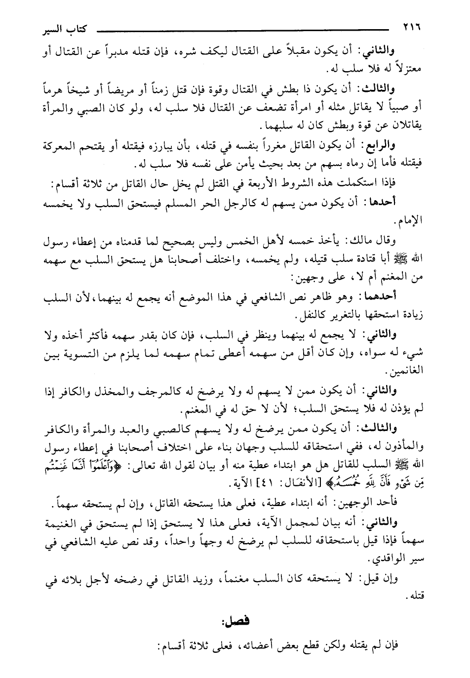 والثالث: أن يكون ممن يرضخ له ولا يسهم كالصبي والعبد والمرأة والكافر والمأذون له، ففي استحقاقه للسلب وجهان بناء على اختلاف أصحابنا في إعطاء رسول الله صلى الله عليه وسلم السلب للقاتل هل هو ابتداء عطية منه أو بيان لقول الله تعالى: {واعْلَمُوا أَنَّمَا غَنِمْتُم مِّن شَيْءٍ فَأَنَّ لِلَّهِ خُمُسَهُ ولِلرَّسُولِ}.