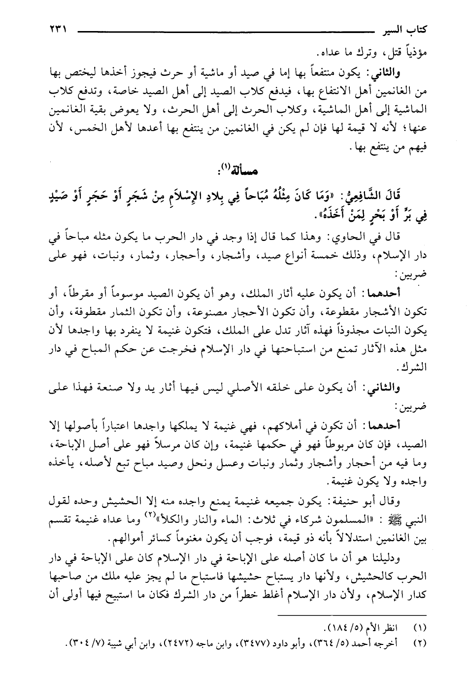 قال الشافعي: "وما كان مثله مباحًا في بلاد الإسلام من شجر أو حجر أو صيد في بر أو بحر لمن أخذه".