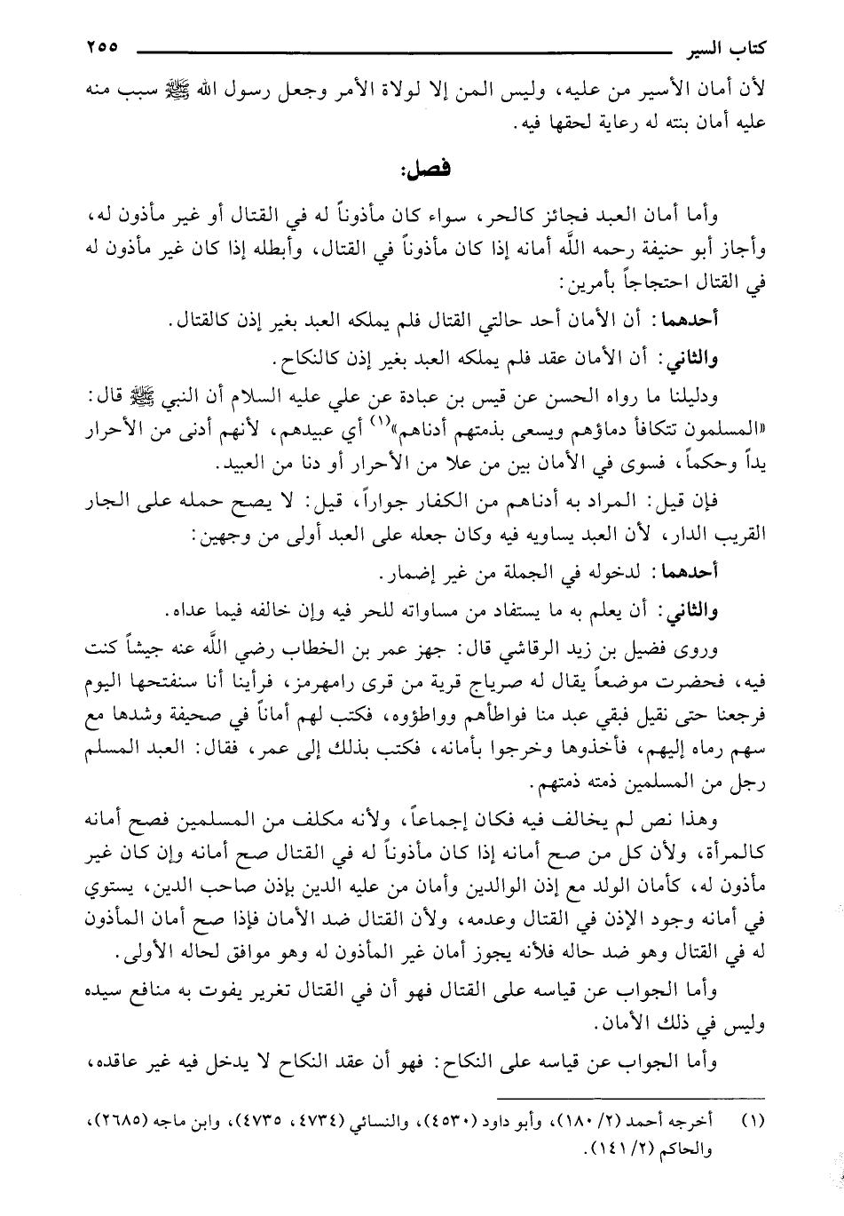 ودليلنا ما رواه الحسن عن قيس بن عبادة عن علي عليه السلام أن النبي صلى الله عليه وسلم قال: "المسلمون تتكافأ دماؤهم ويسهم بذمتهم أدناهم" أي عبيدهم، لأنهم أدنى من الأحرار بداً وحكماً، فسوى في الأمان بين من علا من الأحرار أو دنا من العبيد.