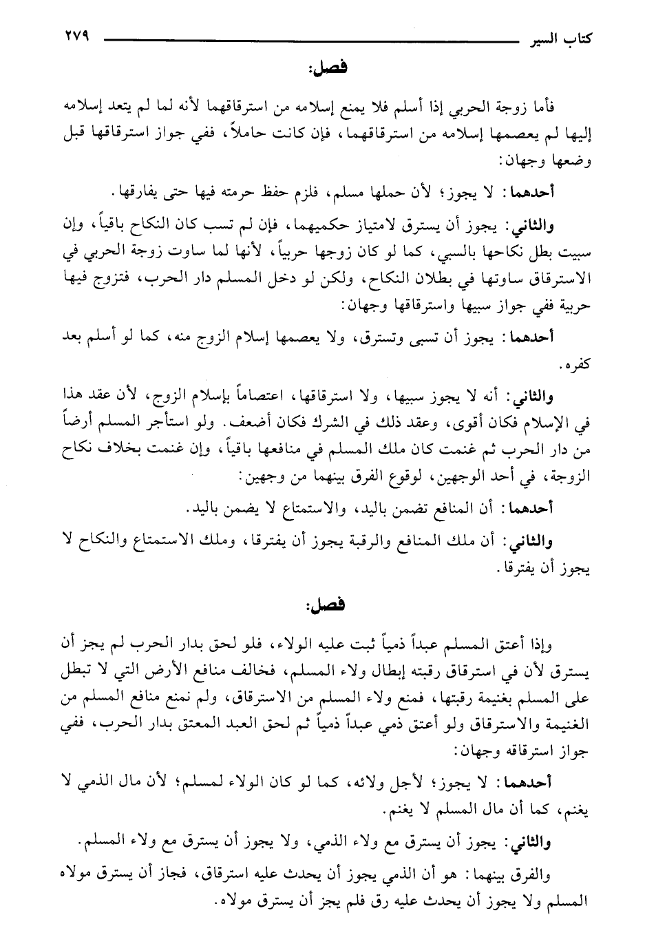 والثاني: أنه لا يجوز سبيها، ولا استرقاقها، اعتصاما بإسلام الزوج، لأن عقد هذا في الإسلام فكان أقوى، وعقد ذلك في الشرك فكان أضعف. ولو أستأجر المسلم أرضا من دار الحرب ثم غنمت كان ملك المسلم في منافعها باقيًا، وإن غنمت بخلاف نكاح الزوجة، في أحد الوجهين، لوقوع الفرق بينهما من وجهين:
