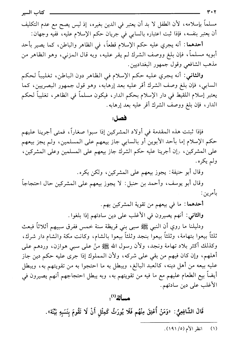 فإذا ثبتت هذه المقدمة في أولاد المشركين إذا سبوا صغارًا، فمتى أجرينا عليهم حكم الإسلام إما بأحد الأبوين أو بالسابي جاز بيعهم على المسلمين، ولم يجز بيعهم على المشركين، وإن أجرينا عليه حكم الشرك جاز بيعهم على المسلمين وعلى المشركين، ولم يكره.