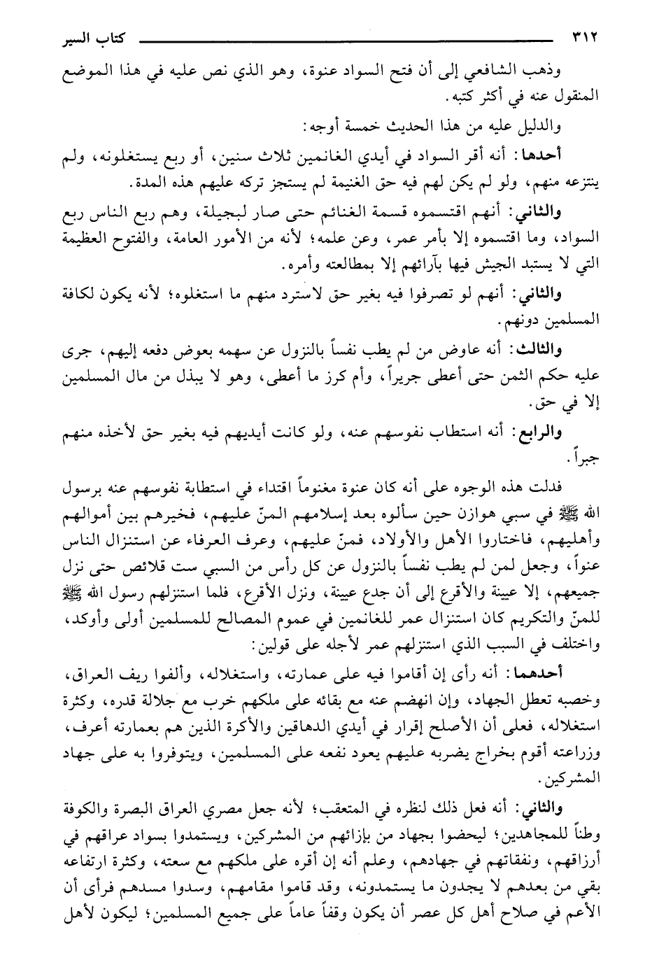 وذهب الشافعي إلي أن فتح السواد عنوة، وهو الذي نص عليه في هذا الموضع المنقول عنه في أكثر كتبه.