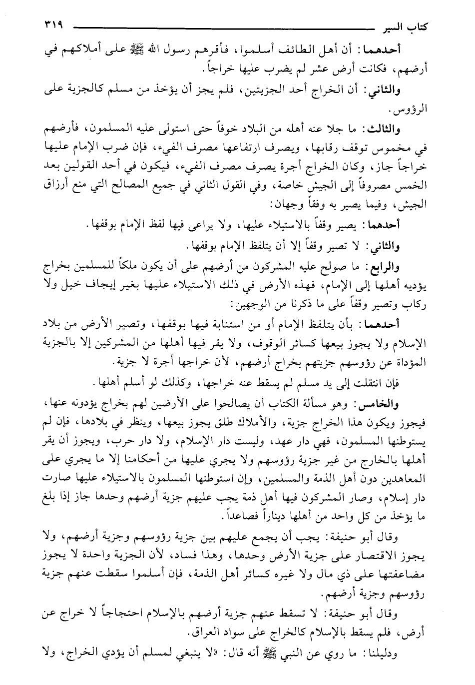 وقال أبو حنيفة: لا تسقط عنهم جزية أرضهم بالإسلام احتجاجا لا خراج عن أرض، فلم يسقط بالإسلام كالخراج علي سواد العراق.