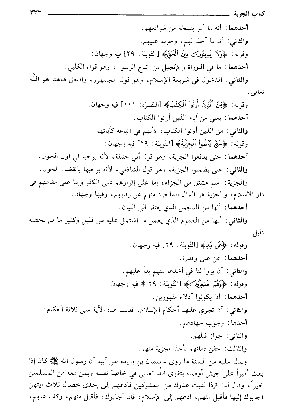 والثاني: أن تجري عليهم أحكام الإسلام، فدلت هذه الآية على ثلاثة أحكام: