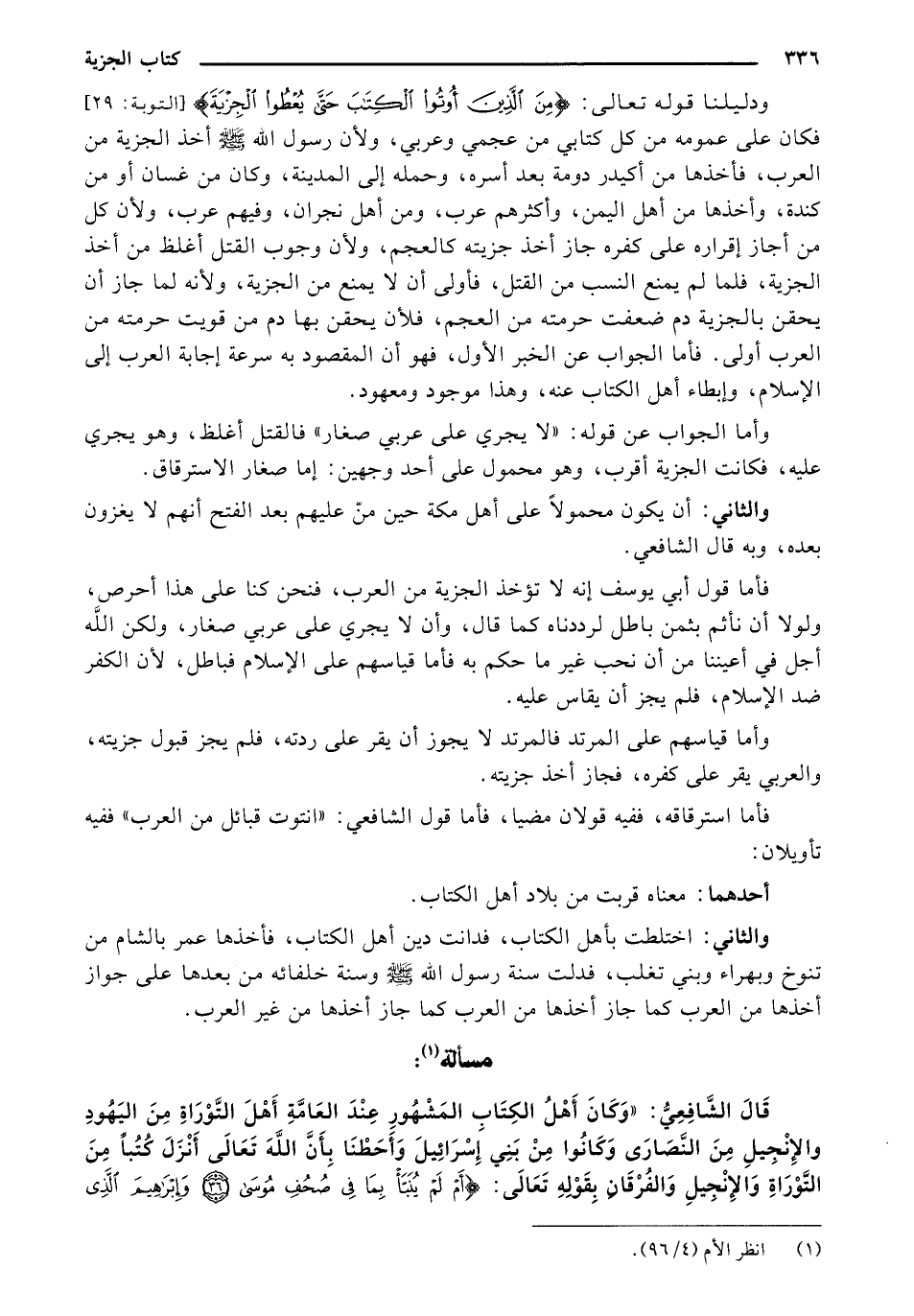 والثاني: اختلطت بأهل الكتاب، فدانت دين أهل الكتاب، فأخذها عمر بالشام من تنوخ وبهراء وبني تغلب، فدلت سنة رسول الله - صلى الله عليه وسلم- وسنة خلفائه من بعدها على جواز أخذها من العرب كما جاز أخذها من غير العرب كما جاز أخذها من غير العرب.