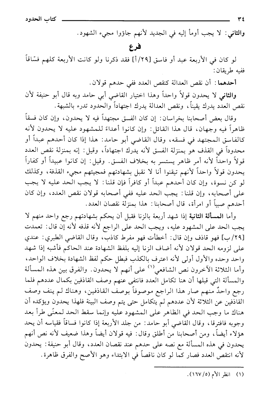 والثاني: لا يحدون قولًا واحدًا وهذا اختيار القاضي أبي حامد وبه قال أبو حنيفة لأن نقص العدد يدرك يقينًا، ونقص العدالة يدرك اجتهادًا والحدود تدرء بالشبهة.