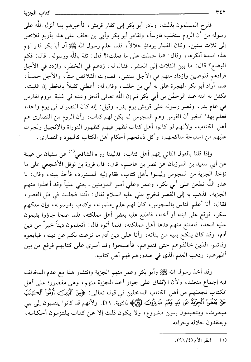 وقد أخذ رسول الله - صلى الله عليه وسلم- وأبو بكر وعمر منهم الجزية، وانتشار هذا مع عدم المخالف فيه إجماع منعقد، ولأن الاتفاق على جواز أخذ الجزية منهم، وهي مقصورة على أهل الكتاب تجعلهم من أهل الكتاب الداخلين في قوله تعالى: {مِنَ الَّذِينَ أُوتُوا الْكِتَابَ حَتَّى يُعْطُوا الْجِزْيَةَ عَن يَدٍ وَهُمْ صَاغِرُونَ} [التوبة: 29]. ولأنهم قد كانوا ينتسبون إلى نبي مبعوث، ويتعبدون بدين مشروع، ولا يكون ذلك إلا عن كتاب يلتزمون أحكامه، ويعتقدون حلاله وحرامه.